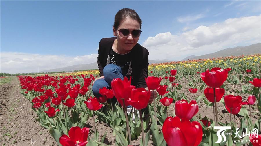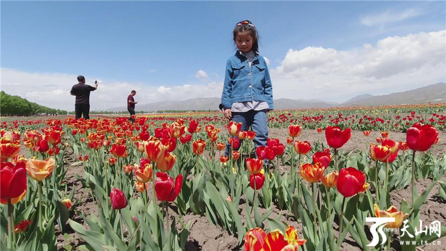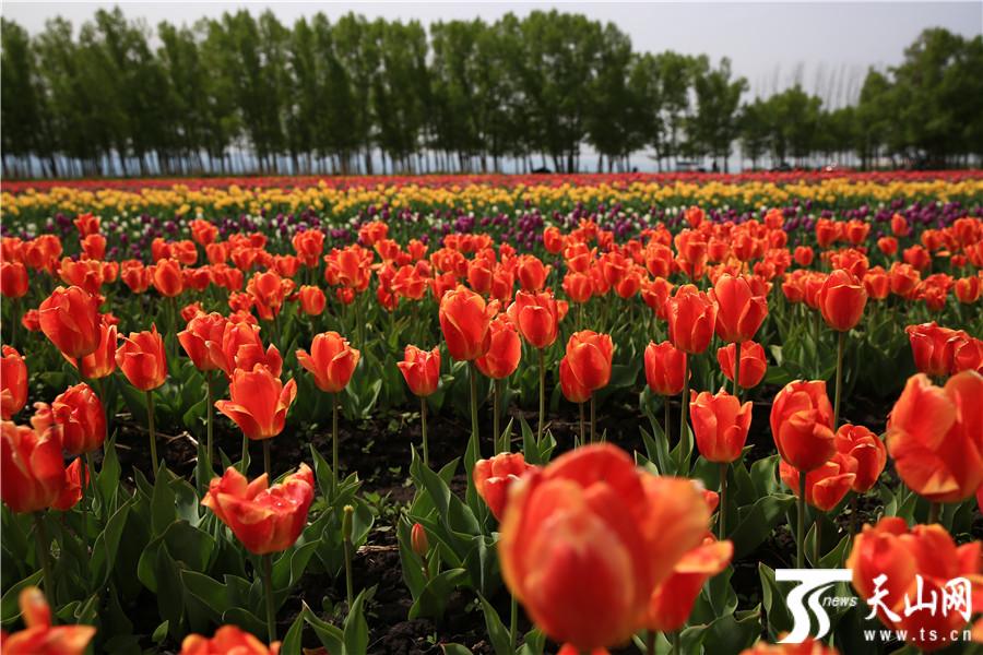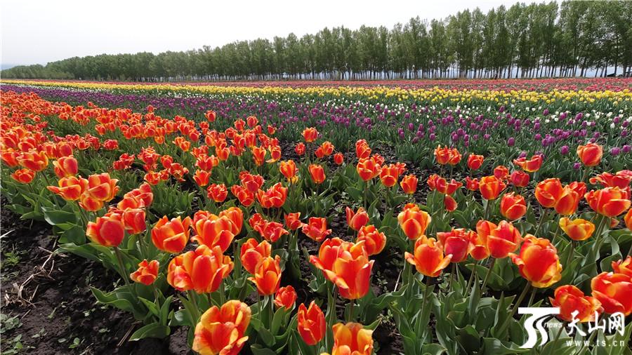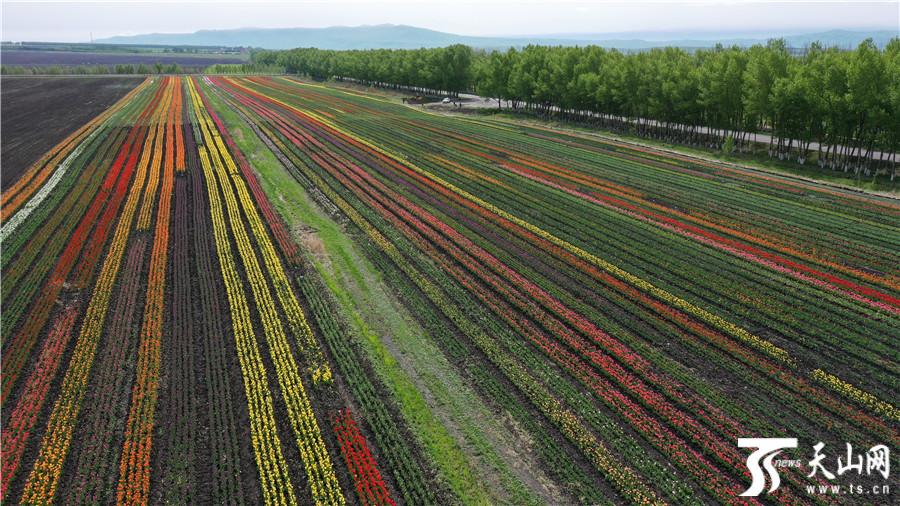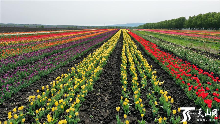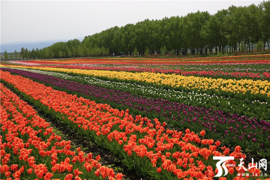 5月11日拍摄的昭苏县农业观光园的郁金香竞相开放。