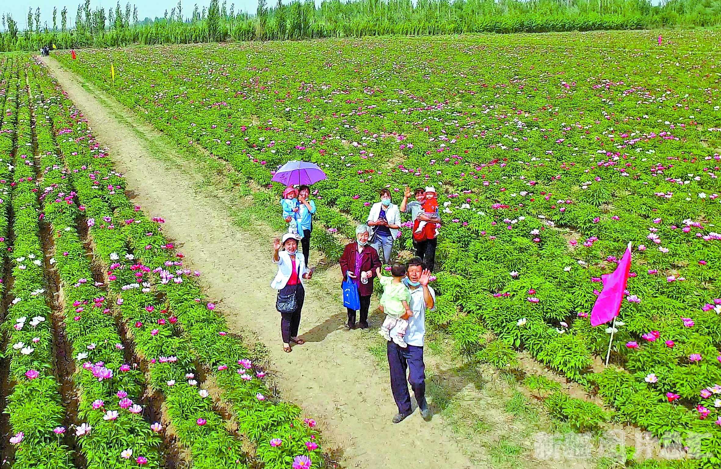 5月13日,游客在伊宁市克伯克于孜乡园艺场村观赏芍药花。进入5月以来,园艺场村种植的200余亩芍药花相继开放,吸引了众多游客前来观赏。 □史恭敬摄