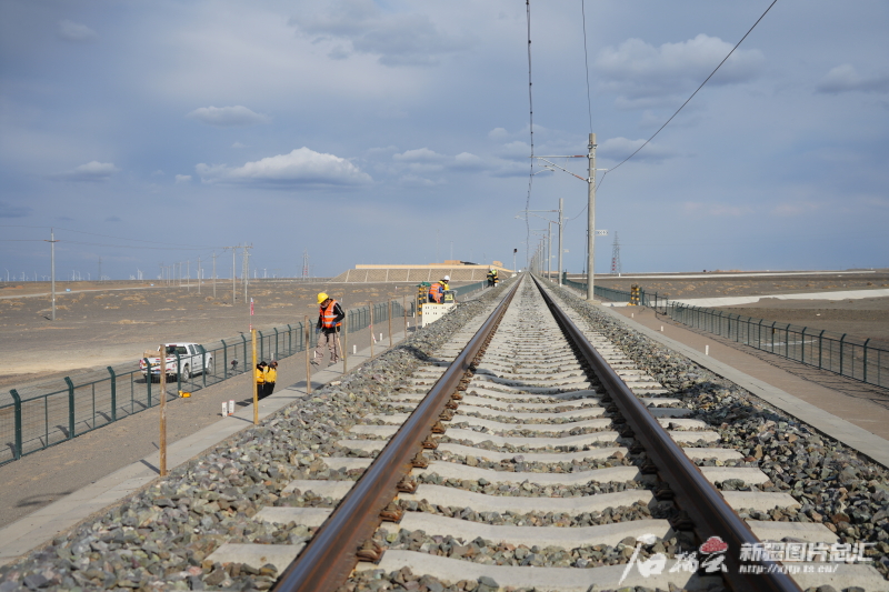4月2日16时,将军庙至淖毛湖铁路三塘湖车站附近,工作人员正在进行路基施工作业。郭子毅 摄