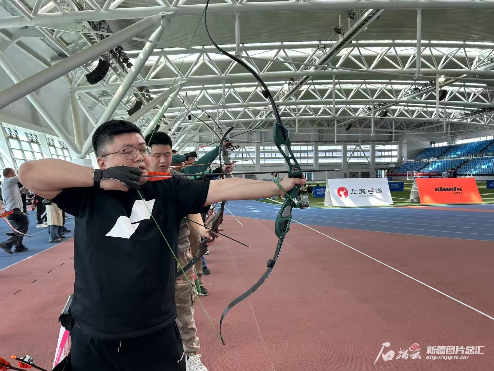 天山网-新疆日报讯(记者阿比拜报道)站位、搭箭、开弓、瞄准、撒放……4月5日,乌鲁木齐奥林匹克体育中心田径馆,首届全民运动汇和银行杯射箭邀请赛上,箭飞出和中靶的声音此起彼伏。来自社会各界的近百名射箭爱好者参加比赛,他们中最大的60多岁、最小的只有5岁。