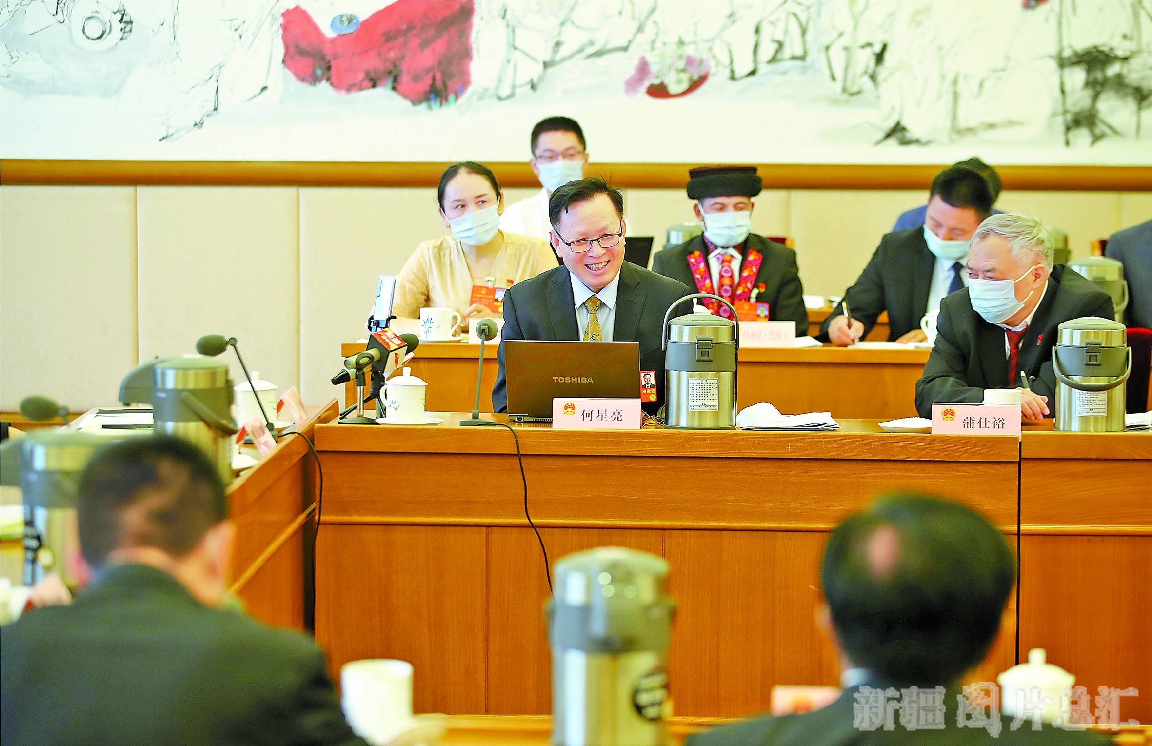 图②:小组会议上,何星亮代表围绕依法维护经济发展和社会稳定大局等内容发言。