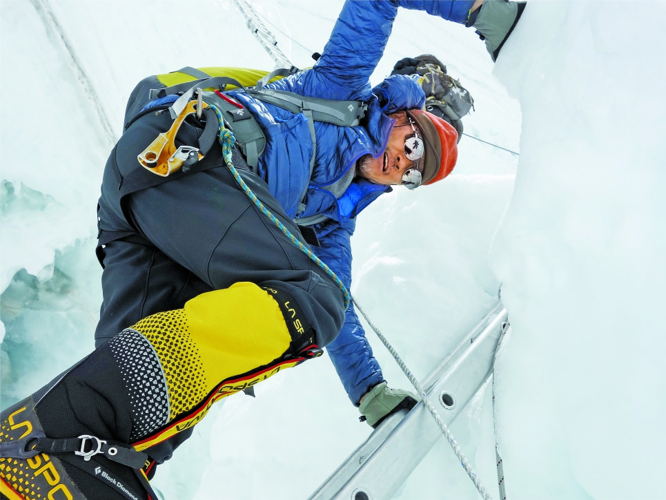 2017年5月16日,王铁男在昆布冰川攀爬。□王铁男提供