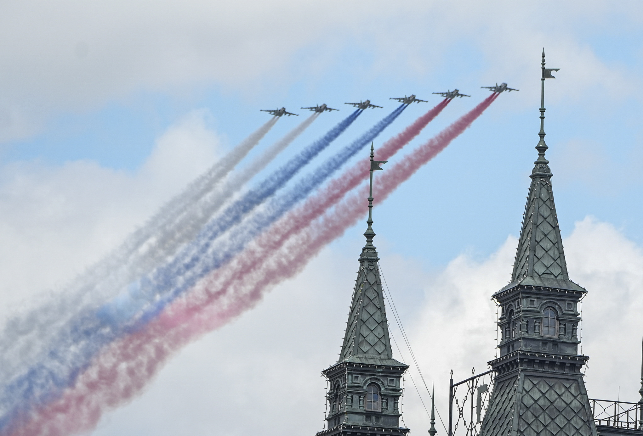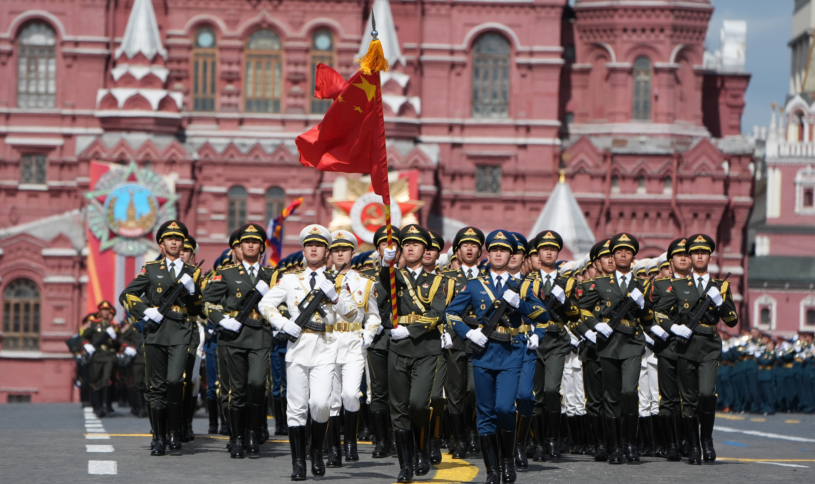又是“梨花开遍了天涯”的季节,又一个神圣庄严的“胜利日”。 5月9日上午,纪念苏联伟大卫国战争胜利八十周年庆典在莫斯科红场隆重举行。中国国家主席习近平和来自世界20多个国家的领导人及国际组织负责人同俄罗斯人民一道重温历史、缅怀先烈,宣示携手为人类前途命运争取更加光明未来的坚定意志。 当地时间5月9日,俄罗斯举行盛大庆典,纪念苏联伟大卫国战争胜利80周年。国家主席习近平和来自世界20多个国家及国际组织领导人应邀出席庆典。新华社记者 谢环驰 摄 习近平主席走向主观礼台,观众席上响起一阵阵热烈掌声。习近平主席向大家挥手致意。 克里姆林宫斯巴斯基钟楼上,巨大的自鸣钟指针指向10时,悠扬的钟声响彻红场。俄罗斯军乐队奏响《神圣的战争》乐曲,仪仗队护卫俄罗斯国旗、伟大卫国战争胜利旗入场。 这是一场缅怀历史的检阅,一场纪念胜利的庆典,更是捍卫和平与正义的宣示。 普京在致辞中说,苏联以数以千万的牺牲捍卫了全人类的和平与自由。我们将永远铭记胜利的时刻,继承父辈遗志,团结一心,永远维护神圣的荣光。中国人民英勇抗战,我们高度赞赏中国人民为开辟人类共同未来作出的贡献。“胜利是神圣的,历史不容篡改,胜利者不容侮辱。历史和公正永远在我们一边。” 一首首乐曲雄壮激昂,一阵阵呐喊响彻云霄,受阅部队如滚滚洪流阔步前行。 这一刻,历史和现实在这里交汇。 1941年11月7日,莫斯科大雪纷飞,德军兵临城下。数万苏联红军在红场阅兵结束后开赴战场,奋勇御敌。“祖国虽大,但已无路可退,身后就是莫斯科。”参加莫斯科保卫战的士兵们说出这样的誓言。 1945年5月9日,苏联播音员尤里·列维坦在无线电广播中宣读了德国法西斯无条件投降书,聚集在红场的人们欢呼雀跃、相互拥抱,喜极而泣,迎来胜利的黎明。 彼时,数千公里外,中国共产党领导的抗日民族统一战线最大限度地动员起全国人民参加抗战。中国军民奋起反击,开启了对日寇的最后一战。 多少国破家亡的悲怆,多少不屈不挠的抗争,多少气吞山河的壮举,多少来之不易的胜利,镌刻于历史,铭记在心间。 “80年前,包括中国、苏联在内的全世界正义力量同仇敌忾、英勇战斗,并肩打败了不可一世的法西斯势力。” “中国、苏联分别作为第二次世界大战的亚洲和欧洲主战场,是抗击日本军国主义和德国纳粹主义的中流砥柱,为世界反法西斯战争胜利作出决定性贡献。” 5月7日,习近平主席在俄罗斯媒体发表署名文章,回顾那段波澜壮阔的峥嵘岁月,表达了铭记历史、捍卫和平的坚定信念。 80年,正义的力量永存,和平的光芒永照。 “5·9”胜利日是俄罗斯人民的节日,也是全世界爱好和平人民的共同节日。来自中国等10多个国家的武装力量方队受邀参加了阅兵式。 五星红旗飘扬,伴随着《保卫和平进行曲》的旋律,来自中国人民解放军仪仗司礼大队的102名队员迈着威武雄壮的步伐走过观礼台。青春的面庞、刚毅的眼神、昂扬的姿态、坚定的步伐向世界展示新时代中国军人的精神风采。习近平主席起身伫立,向战士们致意。观礼台响起热烈掌声。 5月9日,在俄罗斯首都莫斯科,中国人民解放军仪仗司礼大队参加纪念苏联伟大卫国战争胜利80周年阅兵式。新华社记者 赖向东 摄 坐在习近平主席右边的是曾经参与解放柏林战斗的百岁老战士叶夫根尼·兹纳缅斯基。看到英姿勃发的中国军人,他向习近平主席伸出大拇指,眼中流露着由衷钦佩。习近平主席微笑回应。 10年前,从莫斯科红场到北京天安门广场,从俄罗斯“5·9”胜利日庆典到中国九三阅兵,同样的旌旗猎猎,同样的铁甲洪流,同样的呐喊震天。习近平主席和普京总统共同见证了两场承载历史正义的纪念活动。 犹记得天安门城楼上习近平主席那铿锵有力的宣示:“让我们共同铭记历史所启示的伟大真理:正义必胜!和平必胜!人民必胜!”在历史的回响中,我们重温国家和民族的记忆,坚守和平与正义的追求。 今天,人类历史行进到新的时空坐标。在中国人民抗日战争、苏联伟大卫国战争暨世界反法西斯战争胜利80周年的重要时刻,中俄再次并肩携手,共同弘扬正确二战史观,共同发出维护国际公平正义的时代强音。 “俄中两国元首共同出席此次庆典,共同纪念世界反法西斯战争胜利80周年,汇聚起正义和团结的力量。”庆典现场,俄罗斯共产党中央委员会主席根纳季·久加诺夫的笑容中带着期待:“今年9月我们还要赴华参加纪念活动,让我们把胜利的事业延续下去。” 80年,英雄的精神不朽,患难与共的情谊永恒。 从“鹰击长空”、阻击日寇的苏联援华航空队,到向苏方提供第一手情报的中国共产党的优秀地下工作者阎宝航,再到两国携手在大漠戈壁开辟的国际“生命线”,习近平主席讲述的一个个动人故事,让人们重温峥嵘岁月中两国人民结下的生死情谊,汲取砥砺前行的力量。 “持续发展和深化中俄关系,是传承两国人民世代友好的应有之义,是双方彼此成就、促进各自发展振兴的必然选择,也是捍卫国际公平正义、推进全球治理体系改革的时代呼唤。”访俄期间,习近平主席深刻阐释中俄关系的世界意义。 普京总统表示,习近平主席这次访问意义重大,不仅将为俄中关系发展注入强劲动力,也将共同维护二战胜利成果。“俄中始终同舟共济、相互支持,两国友谊牢不可破。” 俄中友好协会