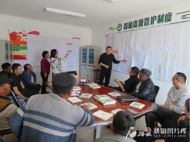 妇女们在织物上勾勒出牧草鲜活的模样。新疆山水环保中心供图。 为更好地记录和传播,大家把妇女绣出来的牧草拼接成整块作品,在“三八”国际劳动妇女节活动中,向村民展示宣传草场环境的变化。牧民什南·切热亚孜旦看完后,建议打印牧草照片,由牧民带着去山上现场观察监测。 与此同时,通过北京合一绿色公益基金会执行的“环保公益天使投资人月捐计划”,在中欧国际工商学院HEMBA22级1班同学的支持下,当地干部群众、保护区、环保组织共同打造生态文化教育公共空间,开展三道海子湿地生态环境介绍、游牧文化宣传和生态旅游体验活动;中华环境保护基金会美团外卖青山公益专项基金还将支持村民开发以牧草为主题的刺绣文创产品,向村民和社会大众开展生态文化教育。 一场场教育活动改变着村民的认知。从最初为增加收入到发展多元化生态保护,村民们心态发生了转变,60岁的查干郭勒乡科克玉依村村民齐合子·哈么扎就是其中一位。他说:“乡里原来跳传统熊舞的人去务工,没有人跳了,我就开始跳熊舞。现在我会去亲戚朋友家的婚礼上跳,不计报酬,给大家讲熊舞的故事,告诉大家我们是怎么做到与自然和谐相处的,大家都拍手叫好,我也非常愿意做环境保护的宣传员。” 与此同时,查干郭勒乡政府也在采取措施,该乡党委书记潘彬彬说:“乡政府通过推进生态牧场建设、改良品种、舍饲精养等办法,实现草畜平衡。” 未来,新疆山水环保中心将继续联合查干郭勒乡政府、新疆阿尔泰山两河源自然保护区管理中心,深入挖掘游牧文化内涵,持续发展多元生计。同时通过记录监测草场、牲畜的变化,促进不同利益群体之间开展关于草场可持续管理的对话,激发出草场保护的直接行动。 从依赖单一牧业,到拓展生态旅游多元收入,全村上下齐心守护绿水青山,江布塔斯村正在经历一场深刻的蜕变。这里的每一寸土地、每一位村民,都在诠释着“绿水青山就是金山银山”的理念。 【继续阅读】 记者手记丨在江布塔斯,看见人与自然的双向奔赴