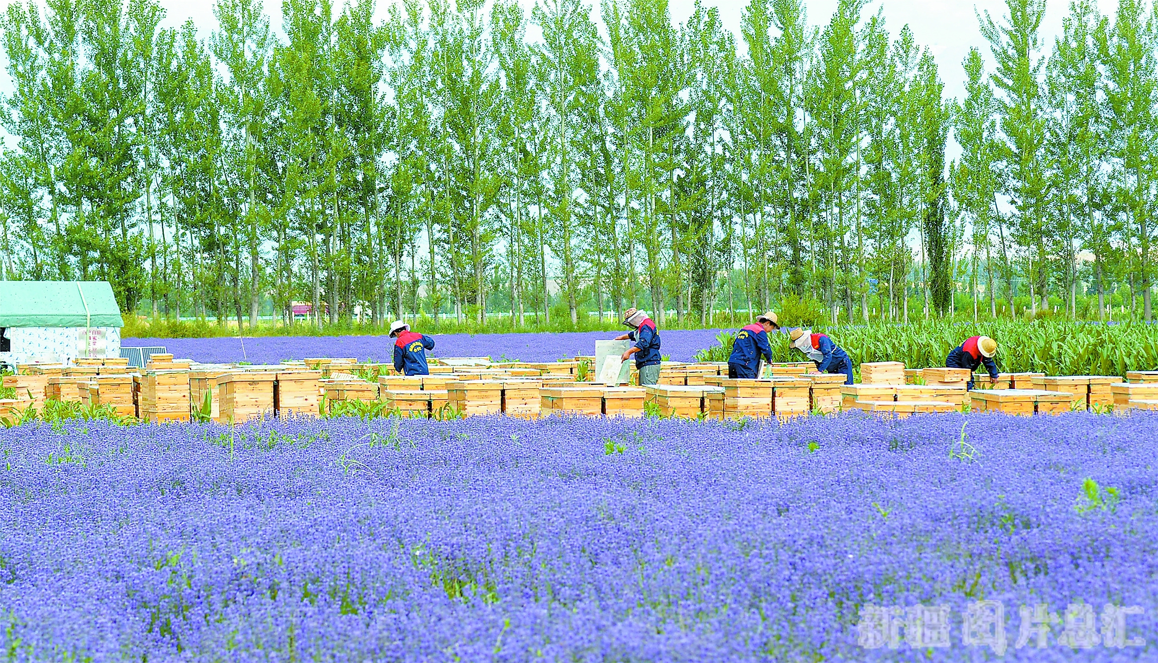 6月19日,在伊犁河谷薰衣草地,蜂农正在查看蜂蜜酿造情况。仲夏时节,地处伊犁河谷的薰衣草进入盛开期,引来大量蜂农追花逐蜜。 □陈洋摄