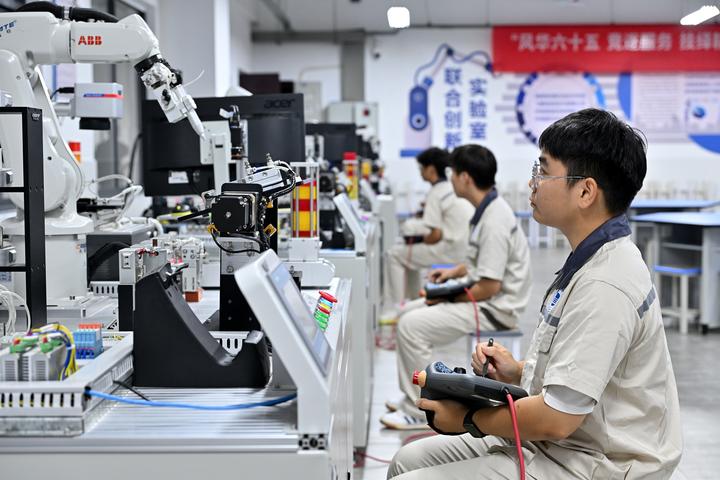 习近平总书记强调:“教育是强国建设、民族复兴之基。” “十四五”规划纲要提出:全面贯彻党的教育方针,坚持优先发展教育事业,坚持立德树人,增强学生文明素养、社会责任意识、实践本领,培养德智体美劳全面发展的社会主义建设者和接班人。 教育兴则国家兴,教育强则国家强。五年来,新时代教育事业在改革发展中不断取得新成就,为中华民族伟大复兴提供有力支撑。 教育资源合理流动 是推进基本公共教育均等化的重要路径 “十四五”期间 一系列协作帮扶举措 照亮了中西部、欠发达地区 孩子们的成长之路 2024年6月18日,上海援青教师阚延俊在位于西宁的果洛西宁民族中学给学生上音乐课。果洛西宁民族中学是一所沪青共建学校。学校招生以来,上海援青团队落实各类教育资金,改善校园面貌,引入先进教育理念,带动整体办学水平和教育教学质量不断提高。 新疆克孜勒苏柯尔克孜自治州阿图什市哈拉峻乡谢依特小学,是一所主要面向柯尔克孜族学生的村级小学,2022年8月成为该州首个西部计划志愿者包校支教的试点学校。23名戍边支教西部计划志愿者服务队的志愿者,在这所小学承担着教书育人的工作。经过近三年的支教服务,学生的学习成绩显著提高,得到当地广泛认可。这是2025年4月23日,支教教师高淑贤(左一)在班级里展示她为学生们制作的“AI梦想职业照”。 西藏林芝市工布江达县娘蒲乡中心小学地处海拔近4000米的高原,是布江达县海拔最高的学校。持续性的对口教育援藏工作有力补充了专业师资力量,改善了学校硬软件设施设备。这是2024年9月3日,西藏林芝市工布江达县娘蒲乡中心小学的孩子们,把自己做好的手抄报展示给岭南师范学院支教队队员胡正培。 高质量职业教育的沃土 孕育着大国工匠的萌芽 “十四五”期间 职业教育体系深入改革,不断创新 结构布局持续优化,产教融合向实向深 2024年7月26日,湖南铁道职业技术学院的学生在工业机器人基础应用实训室接受工业机器人操控技能训练。教育部发布的数据显示,近年来,现代制造业、战略性新兴产业和现代服务业70%以上的新增一线从业人员来自职业院校。职业院校已经成为培养大国工匠、能工巧匠、高技能人才的主阵地。 2024年4月16日,在位于重庆市永川区中德产业园的埃斯维(重庆)机床有限公司,公司技术总监向重庆城市职业学院中德产业学院学生介绍设备操作规范。近年来,重庆城市职业学院联合德国教育力量共建产业学院,引入职业教育先进经验,着力培养适合制造型企业需求的高素质技能技术人才。 2024年11月12日,天津现代职业技术学院老师在无人机产教融合实践中心指导学生。“十四五”期间,各地职业院校在招生规划、专业设置和培养方案等方面与当地的人才“缺口”对接,人才培养方向和产业需求越来越匹配。 建设教育强国,龙头是高等教育 “十四五”期间 我国高等教育体系更加多元 一流大学、一流学科建设加速 培养模式、培养机制不断优化 全力培养紧缺人才、服务强国建设 2025年6月23日,联合国开发计划署驻华代表处和同济大学正式宣布启动“联合国开发计划署-同济大学城市防灾韧性创新实验室(RISE Lab)”。该实验室聚焦推进全生命周期智能防灾减灾,以及超大型城市韧性基础设施建设,为城市防灾减灾提供智慧支持。这是与会嘉宾在参观同济大学土木工程防灾减灾全国重点实验室。 2023年4月6日,哈尔滨工业大学空间环境地面模拟装置科研人员展示空间磁环境模拟与研究系统。2024年2月,由哈尔滨工业大学、中国航天科技集团联合建设的空间环境地面模拟装置通过验收。许多之前需要抵达太空才能进行的实验,如今在地面上就能完成,这也是我国航天领域首个国家重大科技基础设施。 上海交大机器人研究所,是我国最早从事机器人技术研发的专业机构之一,主要在机器人学、工业机器人作业系统与装备自动化技术、生物医学机器人与生机电一体化技术等领域,开展研究和产学研合作。这是2023年11月24日,学生们在研究所的无人系统实验室讨论项目。 近年来,湖北省加快布局人形机器人领域,依托省内高校院所的人才优势和创新体系优势,组织武汉大学、华中科技大学等参与人形机器人相关项目研发,集中推出“天问”“劳动者”“荆楚”等一系列人形机器人。这是2025年5月29日,在华中科技大学机械科学与工程学院,博士研究生丁涛(右二)和团队成员测试“荆楚”人形机器人的搬运能力。 强国先强教,强教先强师 加强教师队伍建设 就要不断擦亮“师者之光” “十四五”期间,教师队伍 素质提升、结构优化、待遇提高 尊师重教在全社会蔚然成风 在安徽省马鞍山市和县乌江镇卜陈村,97岁的卜陈学校退休教师叶连平依然坚持每周上三节课。2021年,他被中共中央授予“全国优秀共产党员”称号。2022年,他获得全国关心下一代“最美五老”称号。图为2025年4月9日,叶连平在卜陈村“留守未成年人之家”给学生上课。 今年37岁的黄光福是云南大学农学院的一名青年教师,同时也是云南大学在云南省勐海县勐遮镇曼恩村成立的多年生稻科技小院的负责人。多年来,他带领学生扎根田间,进行技术攻关。团队利用长雄野生稻特有的地下茎无性繁殖能力,成功培育出“云大25”“云大107”等新品种,突破性地实现水稻“一次栽种、连续收割”,让“割韭菜般