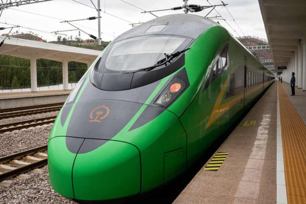 复兴号动车“绿巨人”从元谋西站出发驶向攀枝花(6月24日摄)。新华社记者 胡超 摄