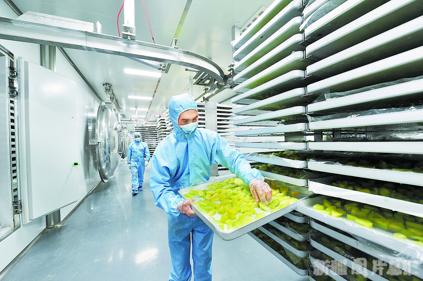 7月9日,员工在莎车县育新服务有限公司冻干车间进行甜瓜速冻加工。今年4月,该县首家果蔬冻干生产线投入运行,形成了集收购、冻干、配送为一体的冻干食品产业链,带动贫困户就业增收。□本报全媒体记者 约提克尔·尼加提摄