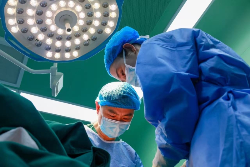 2025年4月20日,郭科(左)给患者实施手术。王伟 摄