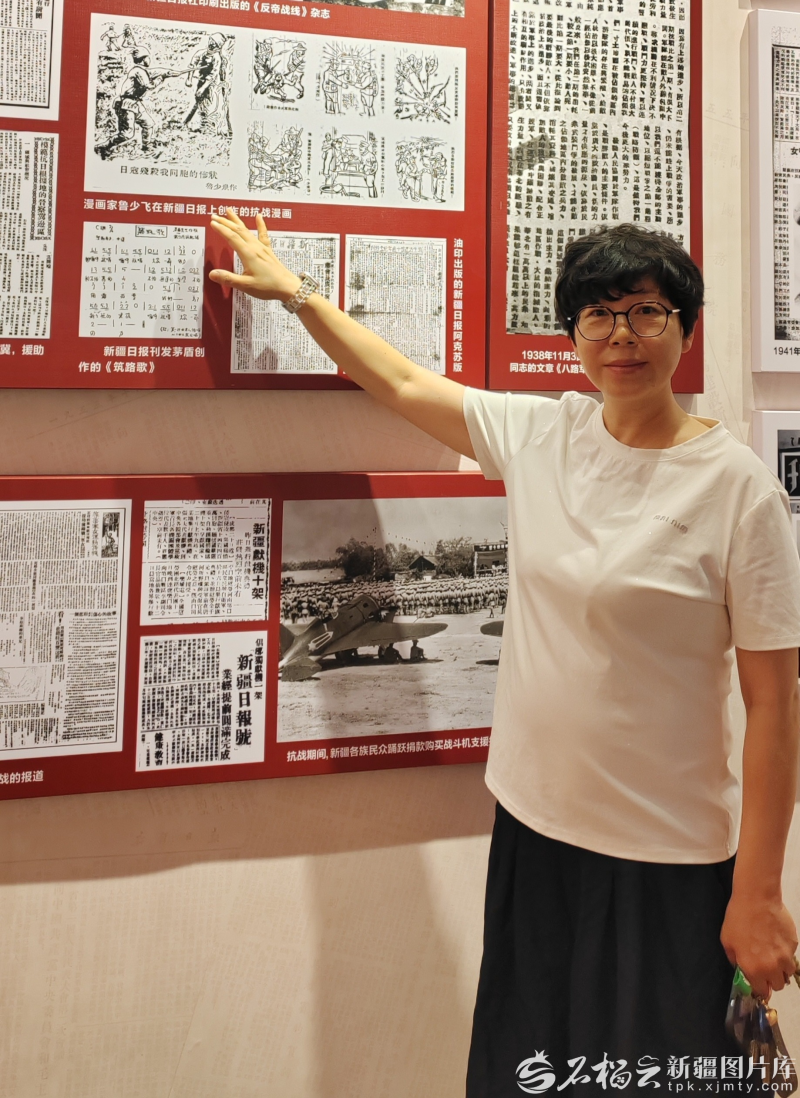 8月13日,在新疆大学校史馆,新疆大学校史研究会会长于付恩向观众讲解新疆大学校歌的来历。石榴云/新疆日报记者 贾春霞摄 最早在新疆传播马克思主义的共产党员是俞秀松。在新疆近3年时间里,俞秀松任新疆民众反帝联合会秘书长,兼任新疆学院院长、省立第一中学(乌鲁木齐市第一中学前身)校长等职。他在任期间,提出了“以民族为形式,以马列为内容”的教育方针,聘请共产党员和进步专家授课,系统传播马克思主义,积极宣传中国共产党的抗日思想和政治主张,号召师生积极投身抗日救国事业。 于付恩说,经过抗日救亡运动洗礼,乔国仁和阿巴索夫等受共产党人影响的各民族进步知识青年,积极开展革命活动,宣传马列主义思想,革命的火种在天山南北播撒。新疆学院成为宣传抗日的基地,培养人才的熔炉,推动新疆文化教育发展的主要阵地。 当时,共产党人主导的《新疆日报》成为主要宣传阵地,大量刊载《论持久战》《新民主主义论》等中共领导人的著作,及时报道八路军战绩以及国际反法西斯动态,日发行量最高达到1.5万份。马列主义经典著作不仅在迪化(今乌鲁木齐)的书店公开出售,还出现在偏远的乌什县。 “马克思主义传播不仅开启民智、唤醒觉悟,更重要的是形成了中华民族凝聚力和向心力,提高了各民族的爱国觉悟,坚定了各民族紧跟中国共产党走的决心和信心。”耿铎文说。 抗战歌曲的传唱,也是新疆开展抗战宣传的一种重要形式。当时,在新疆的中国共产党人主要是依托“反帝会”这一群众组织,开展各种文化活动宣传抗日。大唱革命歌曲成为新疆宣传抗日救国思想和发动各族群众参与抗战的主要形式。抗战烽火中的新疆大地,歌声嘹亮、战歌激昂,“反帝会”用红色音符,沸腾起各族民众共赴国难的热血。 新疆大学历史学院教授何永明说,在中共党员李家麟、陈谷音等人的提倡和努力下,歌咏队如雨后春笋般涌现在各学校、军营和工厂,“反帝会”也曾举办歌咏学习班,请“新兵营”的文化教员教歌曲,每周三次。抗战歌声响彻新疆,极大鼓舞了民众的抗战热情。
