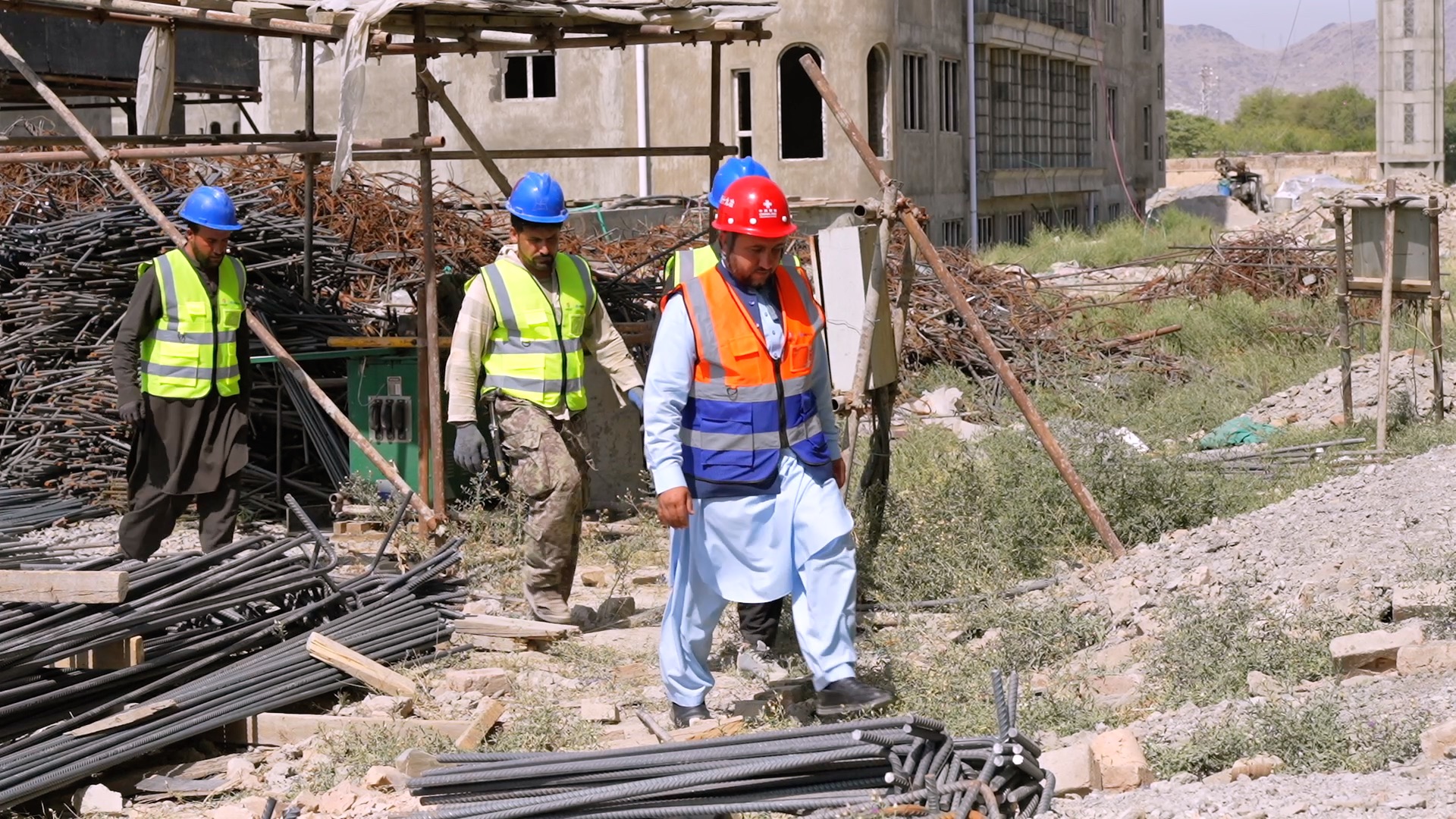 在阿富汗首都喀布尔西郊的一处工地上,一栋栋楼房拔地而起,这是中国企业建造的援阿富汗经济适用型住房项目。项目建成后将解决上千户阿富汗家庭的住房问题。努尔·阿齐兹2017年加入项目部,如今已是团队里的多面手。