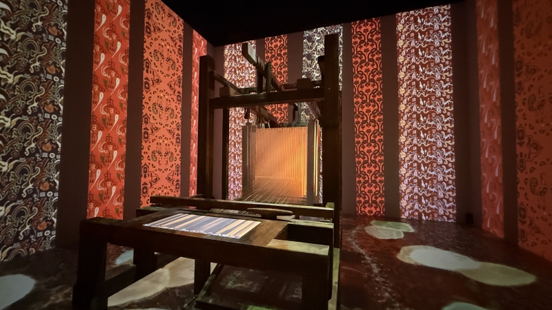 “精绝七日·新疆尼雅遗址数字大展”以发现日、修复日、穿越日、回望日、解密日、奇遇日、展望日“七日”为线索,让观众以“考古学家”第一视角重返沙海深处。观众可在光影与交互中感受考古发掘工作,亲手推动数字织机编织出延续至今的锦绣纹样,甚至在虚拟集市中与丝路商旅邂逅,“沉浸+互动”的体验,让考古与历史“鲜活起来”。