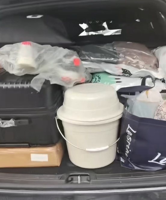 潘先生一家自驾出行的车辆后备厢。图片源自潇湘晨报 送孩子上大学也是他们第一次长途自驾游,一家人也很兴奋。出发前,潘先生的妻子早早收拾好了儿子上学所需物品,“他妈妈带了很多东西,满满都是爱。”潘先生说,他们提前做了攻略,并用导航软件规划了路线,罗列了途中计划去游玩的景区。