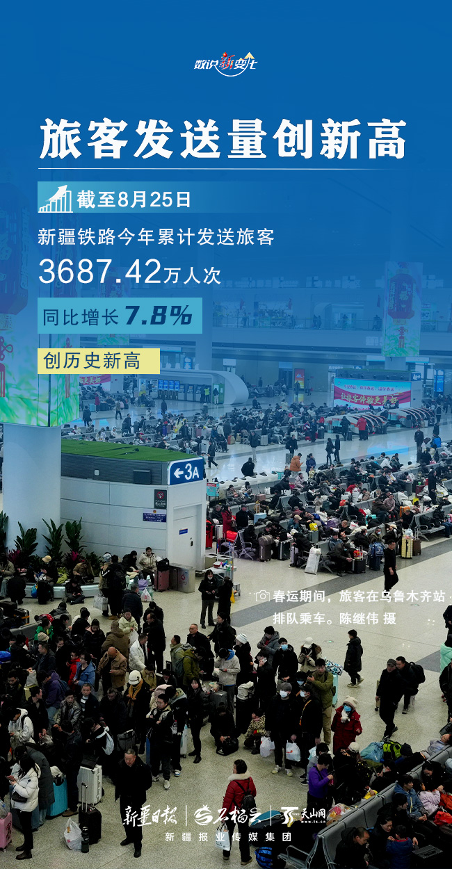 今年以来,新疆铁路部门牢牢把握高质量发展的首要任务,持续挖潜增能提效,拓展延伸服务,创新保障机制。今年前8个月,新疆铁路客、货运输数据怎样?取得了怎样的成绩?本期《数说"新"变化》一起来看看。