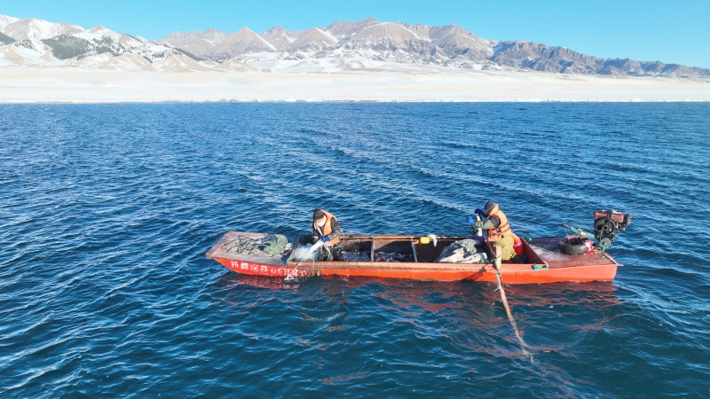 新疆赛湖渔业科技开发有限公司员工在赛里木湖捕捞高白鲑。(资料图)徐启帆 摄 “很早以前就有‘赛里木湖没有鱼’的说法,我就很纳闷,这么美的湖,怎么能少了鱼的灵动呢?”新疆赛湖渔业科技开发有限公司(以下简称“赛湖渔业”)赛湖基地副主任图尔巴特说。 赛里木湖平均海拔2071米,是一座“只进不出”的高山冷水湖泊,从天山山脉上融化的雪水汇聚在这里,湖水除了少量渗透和大气蒸发之外,再无出口。湖面随着天气的变化会呈现出不同的颜色,但湖里没有鱼,让它少了一丝灵气。 为了让赛里木湖更有灵气,从上世纪七八十年代起,博尔塔拉蒙古自治州相关部门的工作人员怀揣着让赛里木湖“有鱼”的梦想,开始了艰难的引种尝试。他们带着不同品种的鱼苗来到湖边,一次次将希望投入湖中,却屡屡受挫,有的鱼苗刚入湖就因无法适应低温环境死亡,有的即便存活下来,也因发育不良,成了“僵小鱼”。 1998年4月,博州从俄罗斯西伯利亚引进100万粒高白鲑发眼卵和100万粒凹目白鲑发眼卵,送到温泉县进行人工孵化,最终成功孵化出98万尾鱼苗,待两种鱼苗长至10毫米,分批次将它们放进赛里木湖。 这次投放还会失败吗?一年以后,科研人员发现,被誉为“冷水鱼皇后”的高白鲑不仅活了下来,且性腺发育良好,正以每4年增重约1公斤的速度稳步生长。 2003年,赛湖渔业正式成立,接过了“养鱼”的接力棒,先后在温泉县建立了冷水鱼良种繁育中心,在赛里木湖建起赛里木湖渔场,还成立赛湖高白鲑食品有限公司。 为培育出更优质的高白鲑品种,赛湖渔业与中国水产科学研究院黑龙江水产研究所、大连海洋大学、新疆农业大学、中国科学院水生生物研究所等高校、科研单位及俄罗斯渔业科研单位合作,联合建立研发机构,共同组织研究开发团队,牵头成立新疆鲑鳟鱼工程技术研究中心、组建新疆冷水鱼产业技术创新战略联盟,还承担自治区冷水鱼产业技术体系温泉综合试验站的工作。 如今,高白鲑已成为赛里木湖的“家人”。它们自由自在生活在赛里木湖,融入了赛里木湖的生态体系,以湖中的浮游生物为食,以自己的节奏缓慢地生长,以自己的方式反哺赛里木湖,不仅平衡了湖里的生态环境,也给赛里木湖带来了些许灵气。 赛湖渔业的员工们会在捕捞期内,用特制的渔网捕捞成熟的高白鲑,通过冰鲜和冷冻方式销往北京、上海、广州、西安等城市。据统计,赛里木湖每年可捕获高白鲑成鱼500吨以上,年产值达4500万元以上。除了外销,赛里木湖周边的餐饮也成了一大特色,来自五湖四海的游客坐在落地窗前,一边欣赏赛里木湖的美景,一边品尝鲜嫩的高白鲑成了旅途中最惬意的享受。