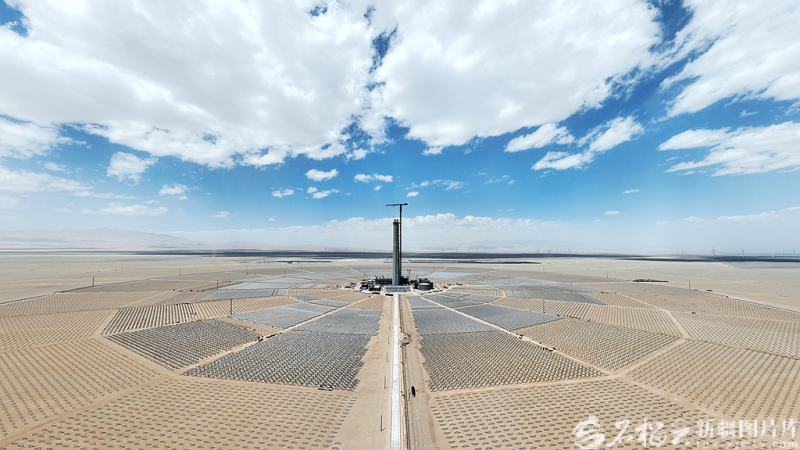 2025年7月1日,中电建若羌光热电站项目高、低温熔盐罐本体顺利封顶。图/若羌县融媒体中心提供