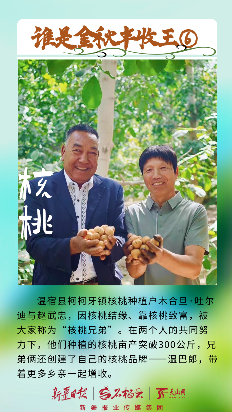 如今,兄弟俩携手创建了核桃品牌——温巴郎,更定下了新目标。“我们计划扩大种植规模,成立合作社,带着更多乡亲一起增收。”