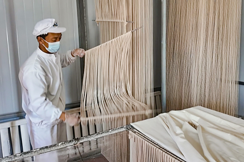 9月12日,新疆三斗粮农业发展有限责任公司生产车间内,工人忙着生产。赵阳 摄 “2024年12月,福建援疆漳州分指挥部组织木垒企业赴漳州市参观学习,我们正是在那次行程中与紫山公司结缘。”三斗粮公司负责人张治国回忆,在参观接洽中,紫山公司对三斗粮公司的手工拉条子表现出浓厚兴趣,而专注于手工拉条子生产的三斗粮公司,恰好急需成熟的酱料配套解决方案。 “双方需求高度契合,当时就有了合作的初步构想。”张治国说。 今年3月25日,第112届全国糖酒商品交易会在成都举办,成为这场合作的“催化剂”。在福建援疆漳州、南平分指挥部的支持下,木垒组织24家农业龙头企业携特色产品亮相展会。同时,借助产业援疆四川联络站的搭桥,昌吉州同步举办了2025年“一月一推介”成都专场推介活动,为企业精准对接创造契机。 “交易会上,我们与三斗粮公司正式签订年销500万元的合作协议,闽疆产业合作就此开启新篇章。”紫山公司副总裁高琼珊对当时场景记忆犹新。这场跨越山海的签约,让天山脚下的优质产品与闽南的食品加工技术正式“牵手”。 闽疆联手 “新疆味”变身“国民餐” 39岁的张治国是土生土长的木垒人,2020年创立三斗粮公司后,始终坚持以新疆优质面粉为原料,用地道传统手工工艺生产拉条子。这两年凭借过硬的品质,公司产品在新疆站稳脚跟,年产值稳定在1500万元至2000万元,但“走出去”一直是企业发展的难题。 “以前我们的手工拉条子没有配料包,消费者食用时需自己炒菜调味,既不方便,也限制了销售范围。”张治国坦言。 而紫山公司的加入,恰好破解了这一困局。该公司在食品加工领域深耕多年,尤其擅长速食食品和酱料的研发与标准化生产。从今年4月起,三斗粮公司每月向紫山公司运送约35吨手工拉条子,价值约40万元;紫山公司则发挥技术优势,研发出多种口味的酱料包,完成组合包装后,依托自身成熟的销售渠道将这款特色融合产品推向全国市场。 “这种融合彻底改变了传统拉条子的食用场景。”张治国算了一笔账,合作近半年,公司新增销售额近300万元。在他看来,产品受欢迎的核心是精准契合市场需求,“现在人们生活节奏快,很多人没时间做饭,这碗拉条子煮好后拌上料即食,既保留新疆拉条子的筋道口感与风味,又解决了便捷性问题,复购率特别高。”