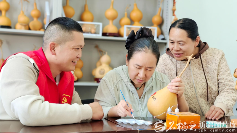 9月22日,居民正在看葫芦刻画民间艺人李盈(中)雕琢葫芦。杨晓红摄 “沙沙……”47岁的葫芦刻画民间艺人李盈,专注地雕琢着手中的葫芦。金色的刀刃下,一朵盛放的牡丹逐渐成形,几名围观的居民跃跃欲试,蘸着颜料,也想绘出自己心仪的作品。 “在中华传统文化里,葫芦象征着‘福禄’和‘团圆’,我把新疆维吾尔自治区成立70周年字样雕刻在葫芦上,寓意着把各民族的祝福都融进这颗‘同心果’里。”李盈笑着说。 李盈自幼热爱书画,2018年偶然接触葫芦雕刻,便迷上了这门“能把故事刻在葫芦上”的技艺。没有老师,她就翻遍网上教程,买了几十个葫芦反复练,手指磨出茧子也不停歇。凭着勤学苦练,她的作品越刻越有“魂”。 自治区成立70周年之际,李盈希望把新疆各族群众的幸福生活画面刻在葫芦上,表达对家乡的祝福。有了想法就开始行动,为了把各族群众对伟大祖国的热爱生动地体现出来,李盈积极进行构思创作,并在社区帮助下多次进行手绘,最终敲定构图开始在葫芦上刻画,一幅幅承载着美好祝福的葫芦画应运而生。 在社区展示台上,除了自治区成立70周年主题的葫芦画,“民族团结一家亲”“天山南北丰收景”等彩绘葫芦画也深得居民们喜爱。 “这些葫芦画会挂在社区每栋单元楼门口,营造浓厚喜庆的氛围。”东旭苑社区党支部书记李玉荣说,这些作品凝结着各族群众的深情祝福,将成为社区珍贵而温暖的记忆。 “葫芦雕刻能够反映我们的幸福生活,特别是在这一极具历史意义的时刻,用刻刀铭刻各族居民的祝福。”李盈说,自己生活的社区是个多民族社区,葫芦画上,刻出的是对祖国对家乡最真挚的祝福,是邻里守望的温情,更是文化自信的种子在这方寸之间的悄然生长。