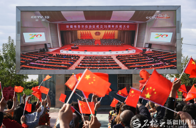 9月25日,吐鲁番市高昌区亚尔镇新城片区新城西门村红石榴广场上,干部群众、教师学生、企业职工等聚在电子大屏前,收看新疆维吾尔自治区成立70周年庆祝大会直播。刘健摄 鼓舞人心 铭记关怀感党恩 25日清晨,帕米尔高原的阳光越过雪山。塔什库尔干塔吉克自治县提孜那甫乡提孜那甫村,“人民卫士”国家荣誉称号获得者巴依卡·凯力迪别克家中,家人早已守候在电视机旁,等待庆祝大会盛况直播。 在塔什库尔干塔吉克自治县,巴依卡·凯力迪别克与父亲、儿子一家三代为红其拉甫边防连官兵带路巡边的故事家喻户晓。 收看庆祝大会盛况后,巴依卡·凯力迪别克的女儿都来提汗·巴依卡深受鼓舞。她说:“父亲常跟我们说,只有祖国安宁,才有我们安定的生活,我们会传承好‘守好边防线’的家训,继续做爱国守边精神的传承者。” 20世纪50年代,库尔班·吐鲁木大叔骑着毛驴上北京看望毛主席的佳话传遍神州大地。而今,在他的家乡——于田县托格日尕孜乡托格日尕孜村,各族群众热爱党、热爱祖国、热爱中华民族大家庭的场景是这里独特的风景。 托格日尕孜村村委会大院里,乡干部、村干部和村民代表一同收看庆祝大会直播。托格日尕孜乡党委书记古松涛说,要以自治区成立70周年为契机,不断讲好库尔班大叔热爱党、热爱祖国、热爱中华民族大家庭的事迹,团结带领各族群众,在乡村振兴、产业发展、文化建设等方面持续发力,为建设更加美好的新疆贡献力量。 25日,乌鲁木齐市天山区二道桥街道固原巷社区洋溢着喜庆氛围,各族干部群众着盛装聚在社区活动室,共同守候这一意义非凡的时刻。 乌鲁木齐大巴扎景区阿凡提馕房负责人热则娅·艾力早早赶到固原巷社区,坐在第一排,收看庆祝大会盛况。“70年来,新疆发生了翻天覆地的变化。我太激动了,特别受鼓舞。”热则娅说,阿凡提馕房以前品种少,每天只能卖几百个馕,现在有20多个品种,生意好的时候能卖1.5万个馕。“只要我们想在一起、干在一起,像石榴籽一样紧紧抱在一起,新疆的明天一定会更加美好,我们的生活会像馕一样,越嚼越香甜。”