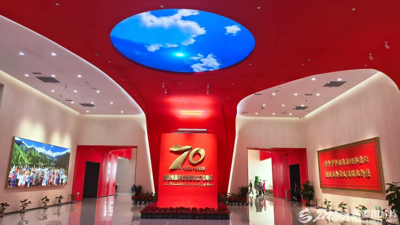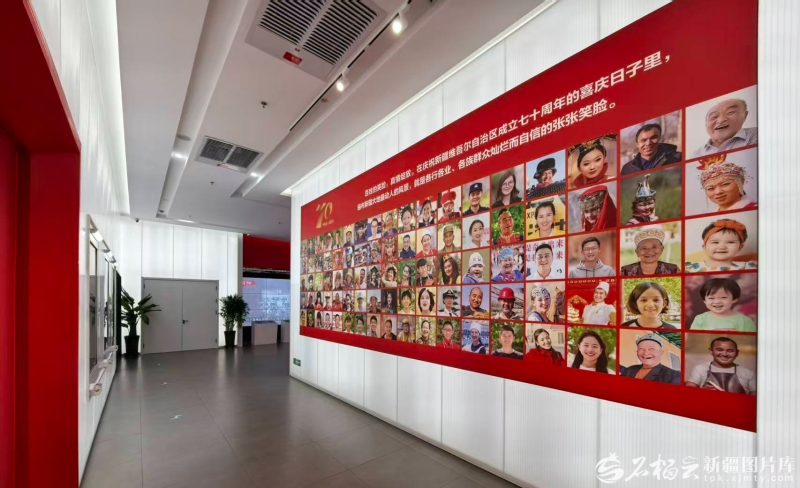 新疆维吾尔自治区成立70周年主题成就展序厅。石榴云/新疆日报记者 韩亮摄