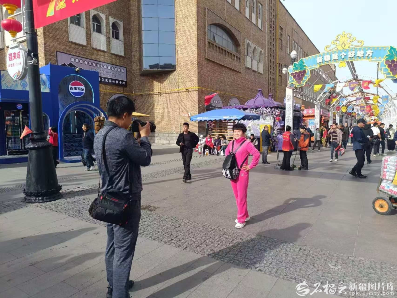 游客打卡。 石榴云/新疆日报记者 任江摄 山西游客周泽夫妇来新疆自驾旅游已有近20天了,一走进大巴扎,立即进入“角色”,妻子兴高采烈地挑选有新疆特色的打卡点,周泽就是“专职摄影师”。“新疆实在太美了,都舍不得离开,这个国庆节特别有意义。”在新疆旅游期间,他们被新疆的发展和变化深深震撼,“我们有幸感受新疆的变化,特别有意义。”周泽说。