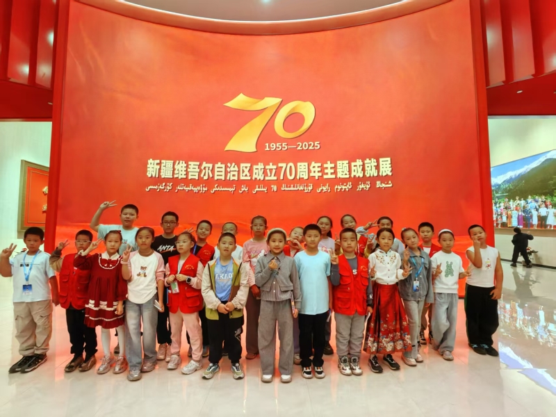 活动结束后小记者们合影留念。 这次活动,不仅让小记者们近距离触摸到了新疆的发展成就,更在他们心里播下了热爱家乡、团结奋进的种子,让正能量顺着青春的声音,传得更远、更响亮。