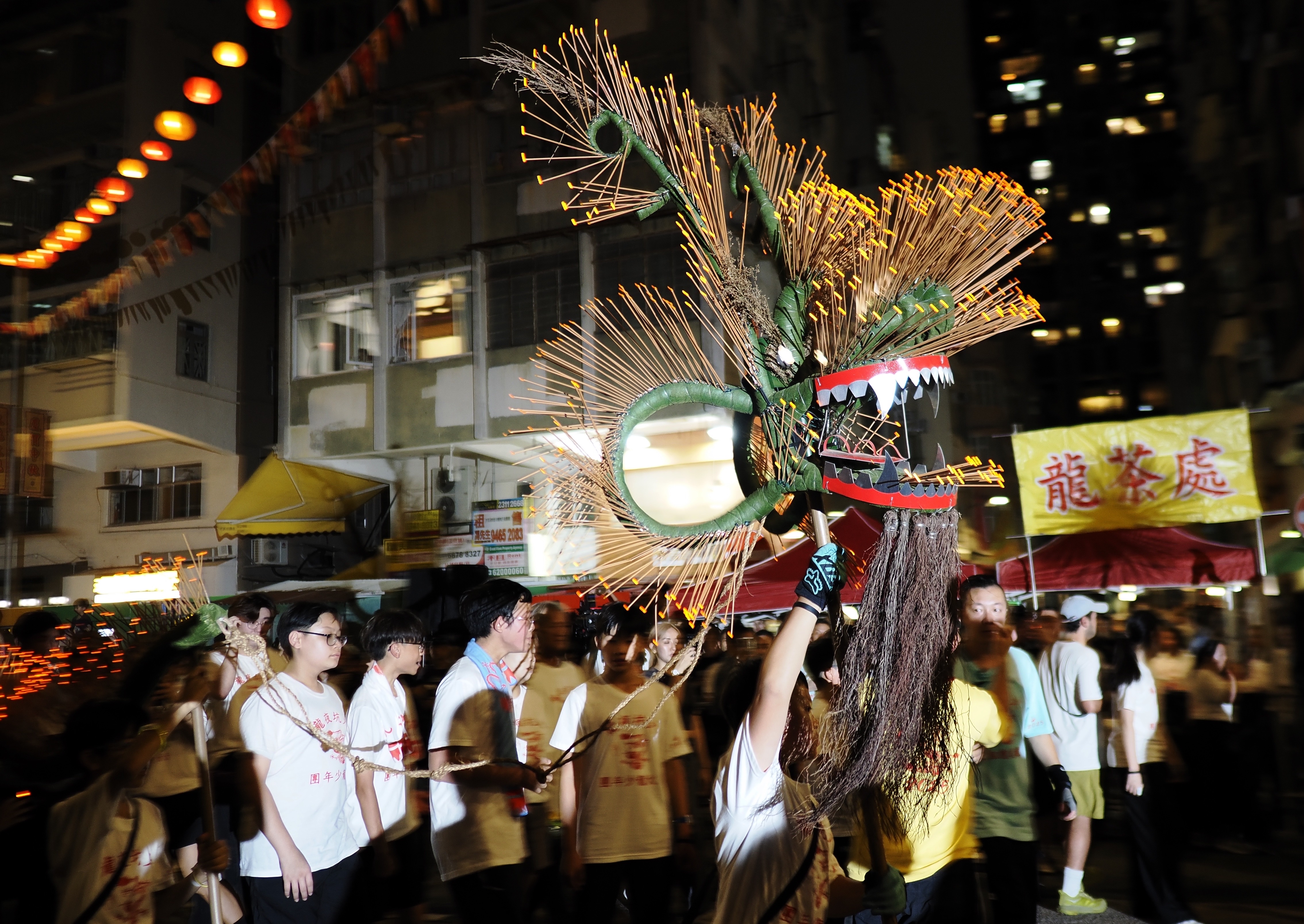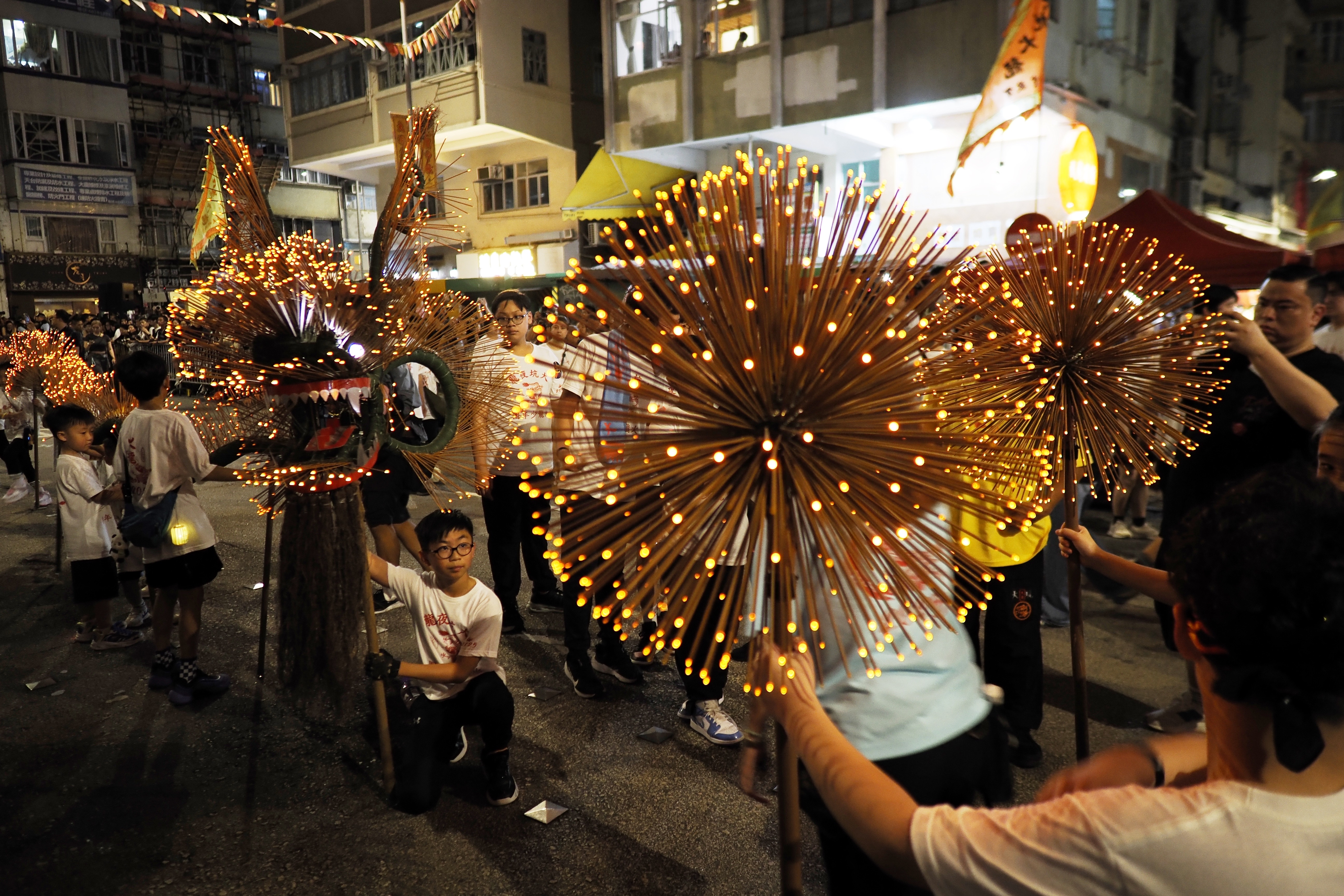 当国际都会遇见传统节庆,香港的中秋节如何呈现中式浪漫?5日晚,有着百余年历史的传统节庆活动“大坑舞火龙”在香港大坑隆重登场。