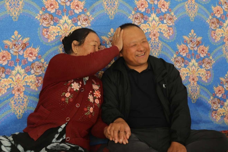 10月6日,尉犁县阿克苏普乡英巴格村,且力皮汗·沙衣提(左)开心地摸着前来陪她过中秋的孙林的头。陈虹宇摄 孙林是山东省临沂市人,2012年来到阿克苏普乡。靠着党的好政策,再加上自己吃苦肯干,他从刚来时的异乡人,慢慢成了当地小有名气的种棉好手。2013年,一次偶然的机会,他走进了且力皮汗老人的家,昏暗的屋子里,唯一的电器是台小旧电视,老人坐在炕边,眼里透着愁苦。后来他才知道,老人的丈夫走得早,她一个人拉扯着7个孩子长大。孙林当时就下定了决心:“党的好政策让我在这儿安了家、致了富,老人有难处,我搭把手是应该的。” 从那以后,孙林成了且力皮汗家的常客。米面油、过冬的棉衣、孩子们用的文具,他隔三差五就送过来。除了这些,家里的大事小事他都记挂着。老人的儿子艾则孜·玉素甫国家通用语言说得不太流利,孙林用拉家常的方式一点点教;赶上棉田要灌溉、施肥的关键时候,他会特意绕到老人家,提醒艾则孜及时做好田间管理;有空了,还会给老人的孙子孙女讲山东沂蒙老区的故事。 “孙林就跟我的亲儿子似的。”且力皮汗常跟村民们念叨这话。最让孙林忘不了的,是且力皮汗的儿子办婚礼时的一幕:“当时要拍全家福,老人家突然把我拉到跟前,紧紧攥着我的手说‘我儿子得站在我旁边’,直到摄影师按下快门,才松开我的手。”那一刻,他心里暖烘烘的,真切地感觉到老人是真把自己当成亲儿子了。 有一回,且力皮汗花了半个多月时间,用深蓝色的掺羊毛毛线,织了两件厚实的马甲送给孙林:“穿上它,冬天就不冷了。” “自打认识‘妈妈’,每年中秋我都来陪她。”孙林说,老人会把月饼掰成小块递给他,念叨着“慢点儿吃,别噎着”;老人也会提前晒好葡萄干,说“月饼配这个吃,味儿更好”。 今年中秋,孙林刚进门,就被老人拉着尝刚炸好的馓子:“特意多撒了芝麻,是你爱吃的那个味儿。”不大的餐桌上,月饼、馓子和葡萄干摆在一起,满是家的温暖。 孙林也早把阿克苏普乡当成自己的第二故乡。每年春节会回山东看父母,中秋节都在新疆过:“看着尉犁的月亮,陪着‘妈妈’,跟在老家过节没两样。” 孙林还持续帮衬乡邻。这些年,他前后拿出来近10万元,帮当地学校和困难家庭;自家闲着的大型农机,免费借给乡亲们用,还在田间地头手把手教各族农户种棉花。 天色渐渐暗下去,孙林从包里掏出从山东老家带来的红枣,递给且力皮汗;老人拿起块月饼,塞到孙林手里。“今年是自治区成立70周年,国庆中秋又一起来了,这好事一件接一件,往后的日子肯定会越过越红火,咱就这样每年都一起过中秋,全家团团圆圆,多好!”孙林握着且力皮汗的手,眼里满是笑意。