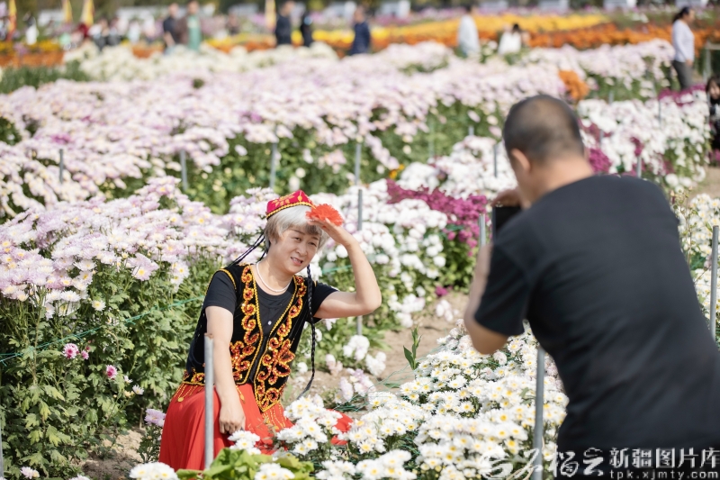 10月8日,新疆农业博览园菊花展现场游人如织。
