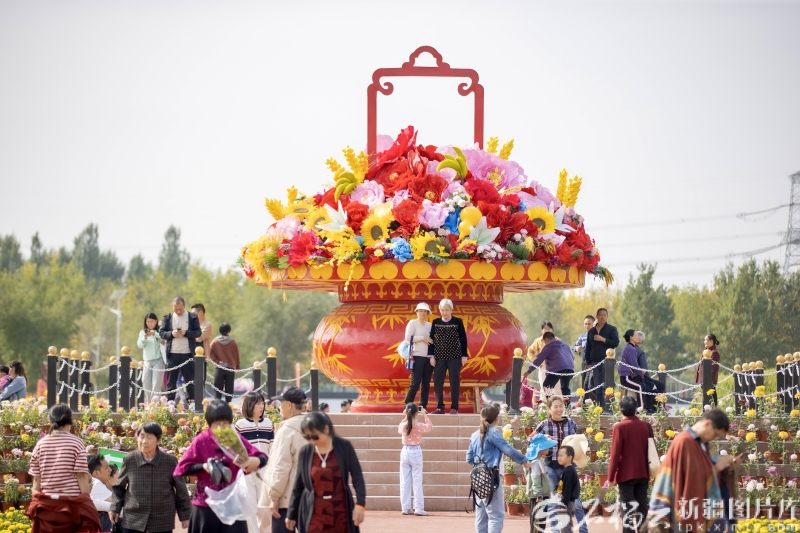 10月8日,游客在新疆农业博览园拍照打卡。