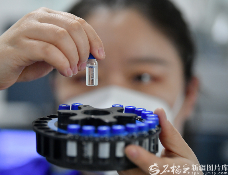 10月13日,新疆天山制药工业有限公司工作人员在实验室查看样本。 石榴云/新疆日报讯(记者 邹懿摄影报道)“我们在甘草废渣中提取用于胃药、食品添加剂、高级化妆品的高价值成分,最终的废渣还可以作为土壤改良剂还田,真正对废弃物做到了‘吃干榨尽’。”10月13日,新疆天山制药工业有限公司安全环保部经理李新宁说。