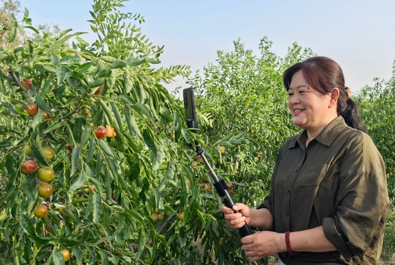 10月9日,在尉犁县兴平镇哈拉洪村枣园里,王晓红正直播介绍冬枣。唐雪芹 摄 “做电商,信誉是根。”王晓红说。此前,一位客户有12吨葡萄干滞销,多次尝试销售无果后找到她求助。她当即查看样品,随后组织人员对这批葡萄干进行人工二次筛选,剔除不合格产品,进一步提升商品品质。之后,她联系到一家互联网运营商,先后邮寄样品、撰写推广材料。短短一周内,订单从几百单飙升至上千单,滞销的葡萄干很快销售一空。 当前恰逢尉犁瓜果盛产期,田埂间、果园里飘满清甜果香。王晓红每天在地头直播,跟着农户一起采瓜果、展品质,把田间的新鲜劲直接传递给网友。打开王晓红的视频号,会发现她的直播没什么炫酷的运镜,也没有复杂的剪辑,画面简单却透着真实。这份不修饰的朴实,最能戳中人心。不少观众被她的实在劲、真诚感打动,成了她的回头客。 多年来,凭借对信誉的坚守和不懈努力,王晓红收获了31.8万线上粉丝,每年销售新疆特色农产品约200万元,还先后荣获巴音郭楞蒙古自治州“最美巾帼致富带头人”“最美网络主播”“销售能手”等荣誉称号。在她的带动下,越来越多的直播爱好者加入尉犁电商协会;她还帮助5名妇女实现就业,在她的指导下,这些妇女有的转型做电商主播,有的成为店员负责选货,有的投身后期运营,用各自的方式书写着奋斗青春。 王晓红介绍,尉犁县电子商务协会成立10年来,累计培训电商从业者2000余人次。成功孵化200余家企业,带动就业690余人。目前尉犁县电子商务协会直播基地有10家企业、6个直播团队、43名主播入驻。2024年,尉犁县直播电商销售额达1.7亿元,特色农产品通过电商渠道进一步走向全国。 “希望通过自己的努力,让尉犁的特色产品通过电商平台销往全国各地,让消费者都能买到地道、优质的尉犁农货。”王晓红说。