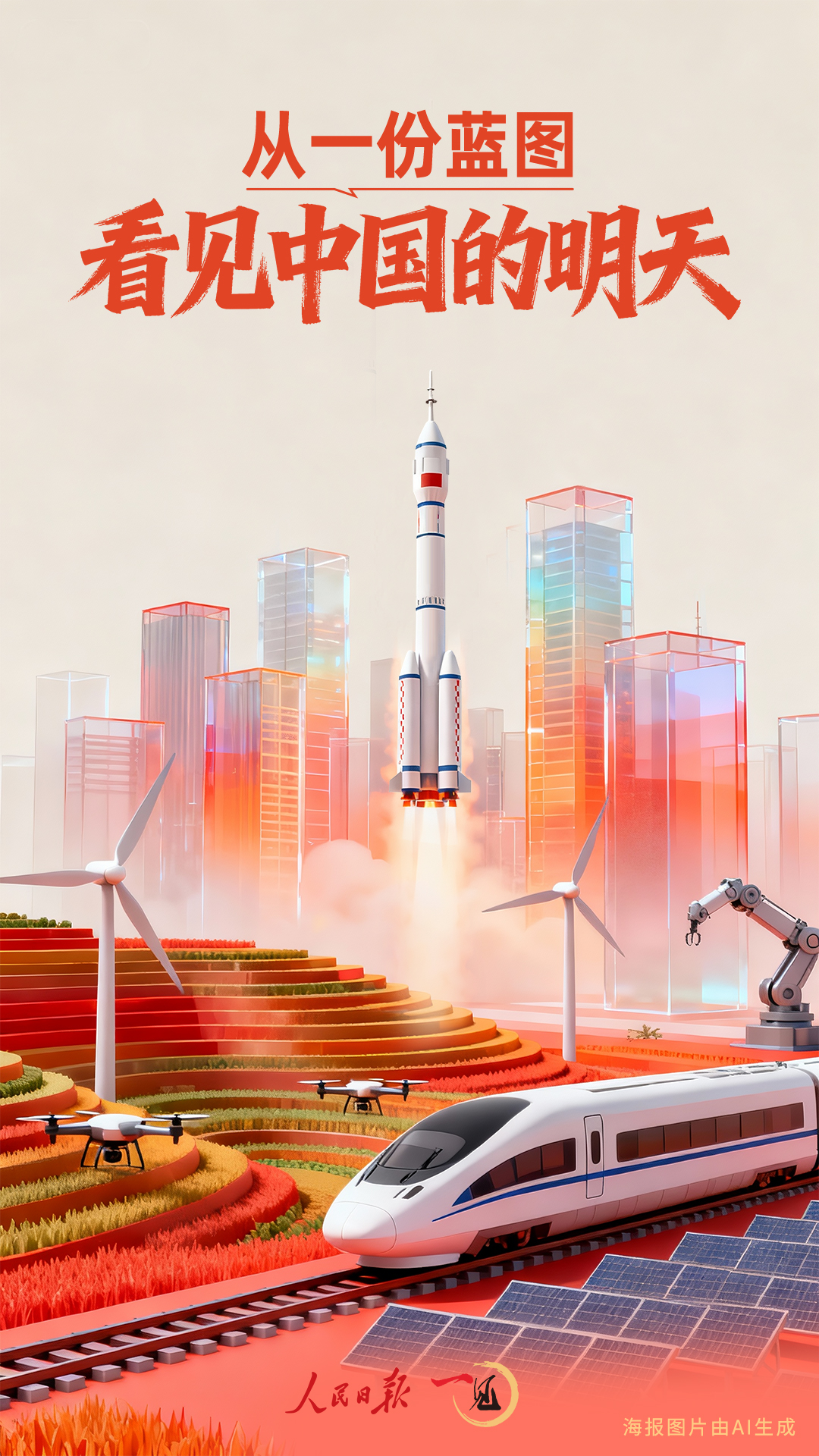 一个目标 “要锚定基本实现社会主义现代化目标” 现代化,一个贯穿全会公报始终、出现23次的高频词,一个读懂过去之中国、未来之中国的关键词。 透过“极不寻常、极不平凡”的“十四五”时期,望向风雨苍黄的来时路。 从百业待兴到世界第二大经济体,14个五年规划(计划)如同14块岿然巨石,共同垒筑起中国从站起来、富起来到强起来的历史跨越。 “从第一个五年计划到第十四个五年规划,一以贯之的主题是把我国建设成为社会主义现代化国家。” 实现现代化,中华民族孜孜以求的梦想。 正如全会指出,实现社会主义现代化是一个阶梯式递进、不断发展进步的历史过程,需要不懈努力、接续奋斗。 “辨方位而正则。”要掌握历史主动与战略主动,必须要读懂中国所处的历史方位、时代方向。 ——明历史方位。“‘十五五’时期是基本实现社会主义现代化夯实基础、全面发力的关键时期,在基本实现社会主义现代化进程中具有承前启后的重要地位。” ——辨外部环境。“当前我国发展处于战略机遇和风险挑战并存、不确定难预料因素增多的时期。” “谋划‘十五五’时期经济社会发展,要锚定基本实现社会主义现代化目标,深刻把握国际国内形势”,习近平总书记强调。 统筹推进“五位一体”总体布局,协调推进“四个全面”战略布局,统筹国内国际两个大局……把握时与势,洞察危与机,科学规划正缓缓铺展下一个五年的康庄大道。 一项战略支撑 “高水平科技自立自强是高质量发展的战略支撑” 面向“十五五”时期经济社会发展,与“十四五”规划相承续,全会强调:以推动高质量发展为主题。 在一个多月前的党外人士座谈会上,习近平总书记强调:“高水平科技自立自强是高质量发展的战略支撑”“扎实推动高水平科技自立自强”。 “十四五”时期,我国科技实力跃上新台阶。科技自立自强水平大幅提高,被列入“十五五”时期经济社会发展的主要目标。 “要以科技创新引领产业创新,积极培育和发展新质生产力”。 看宏观,2024年全社会研发投入超3.6万亿元,高水平国际期刊论文数量和国际专利申请量连续5年排名世界第一,研发人员总量世界第一; 察具体,人工智能、新能源、生物科技等领域硕果盈枝,正在形成新的经济增长点,为“十五五”经济社会发展奠定了坚实基础。 中国式现代化要靠科技现代化作支撑。加强原始创新和关键核心技术攻关、推动科技创新和产业创新深度融合、一体推进教育科技人才发展、深入推进数字中国建设……党的二十届四中全会对科技创新引领发展新质生产力作出明确部署,向着2035年建成科技强国的战略目标,再迈坚实一步。 一个根本价值取向 “要把造福人民作为根本价值取向,坚持在发展中保障和改善民生” 这是一份发展依靠人民的蓝图。 有民意的涓滴汇流。提前了近3个月,311.3万条网民建言……相较五年前,“十五五”规划编制工作网络征求意见开展得更早,也收获了更多热气腾腾的国情民情。 有智慧的聚火成炬。习近平总书记主持召开一场场座谈会,开门问策、凝聚共识,映射出一字一句背后,更加鲜明的民主底色。 “中国式现代化是亿万人民自己的事业,人民是中国式现代化的主体,必须紧紧依靠人民,尊重人民创造精神,汇集全体人民的智慧和力量,才能推动中国式现代化不断向前发展。” 这也是一份发展为了人民的蓝图。 一项接续奋斗的事业足见之。 回眸2020年,史无前例的历史性工程脱贫攻坚,如期完成。之后,设置5年过渡期,推动巩固拓展脱贫攻坚成果同乡村振兴有效衔接,脱贫基础更加稳固、成效更可持续。 回到当下。党的二十届四中全会提出,要统筹建立常态化防止返贫致贫机制,就是要着眼中国式现代化建设全局,把常态化帮扶纳入乡村振兴战略统筹实施,确保不发生规模性返贫致贫。 建立和完善常态化帮扶政策体系、支持欠发达地区加快发展、提高监测帮扶的时效性精准性,桩桩件件无一不印证着一句论断: “中国式现代化是全体人民共同富裕的社会主义现代化。要把造福人民作为根本价值取向,坚持在发展中保障和改善民生。” 家事亦是国事。 从促进高质量充分就业到完善收入分配制度,从办好人民满意的教育到健全社会保障体系……更多可感可及的具体举措,化作这张蓝图最温暖的民生底色,展现了中国共产党对“发展为了谁”的深层价值取向。 历史从这里起步。规划美好未来,不惧时代风浪,以中国式现代化全面推进中华民族伟大复兴,经济快速发展和社会长期稳定两大奇迹,必将在这片广袤大地上,续写崭新的篇章。 策划:杜尚泽、彭俊 撰文:陈世涵 编辑:王靖远 海报:田兴洲 校检:吴玥 责任编辑:王靖远