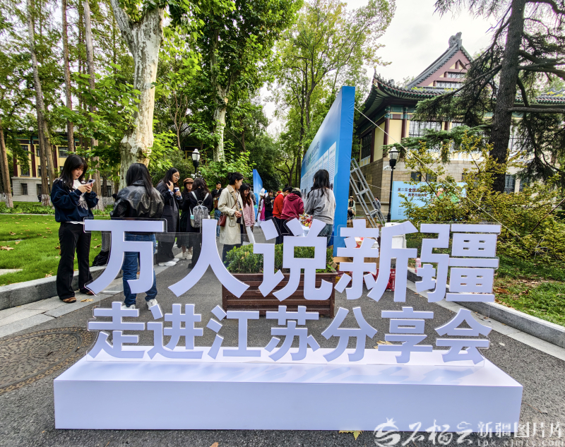 石榴云/新疆日报讯(记者 周鹏摄影报道)10月27日,“万人说新疆”走进江苏分享会配套活动校园文化集市展,在南京师范大学随园校区启幕,为师生们带来一场家门口的“天山奇遇”。
