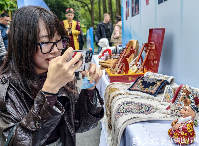 10月27日,南京师范大学随园校区,一名参观者在拍摄新疆工艺品。