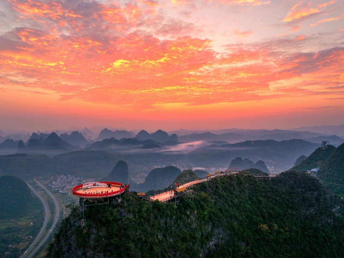 桂林阳朔如意峰索道景区将于10月29日举办第六届云顶太极秀暨重阳登高节,届时不仅有阳朔太极拳协会的老师们在如意峰至高处演绎“云顶太极”,还有景区特设的“重阳菊饮”茶席。参与活动的长者嘉宾还将获赠一枚传统手工制作的“中医养生经络锤”。