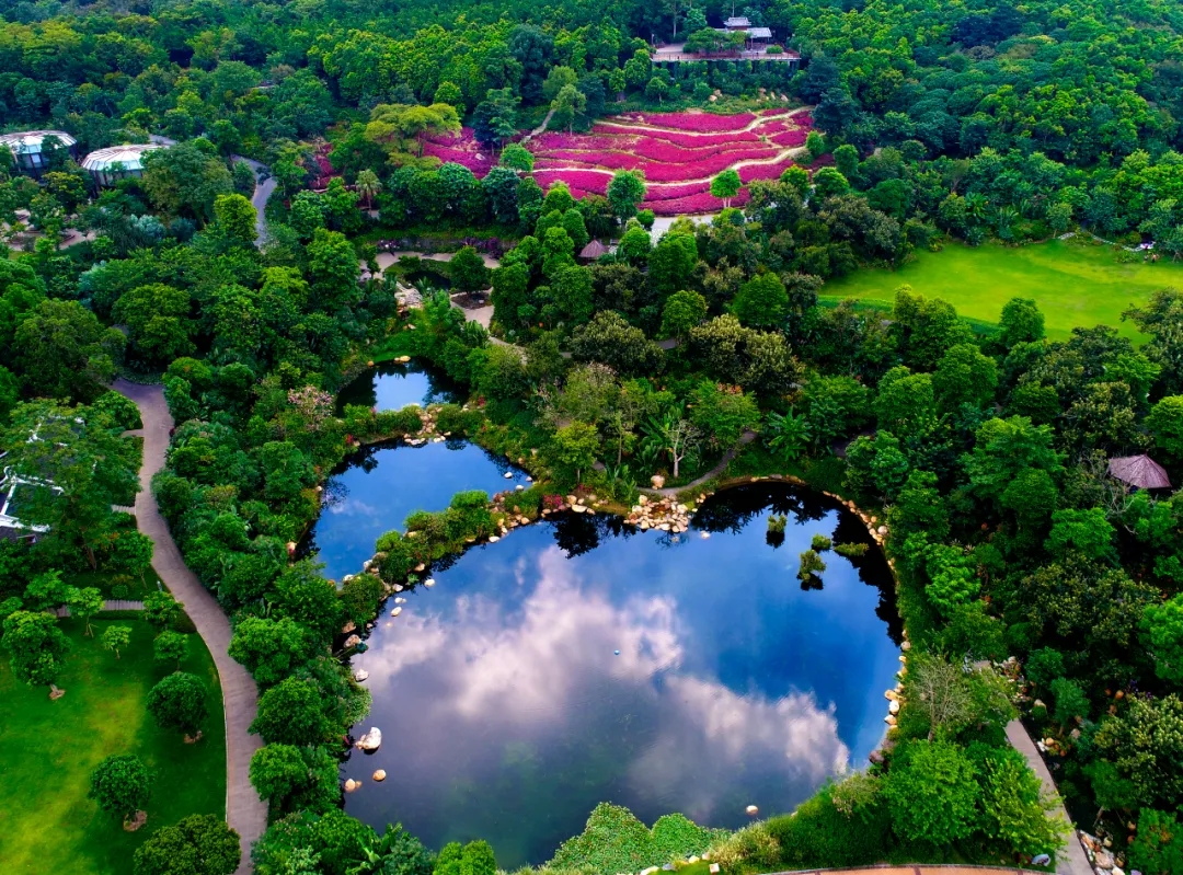 踏上这条路线,漫游叶子花园打造的缤纷之境,穿越生机勃勃的翠竹密林,在音乐大草坪自在舒展,被风铃园的湖泊山色与城市天际线震撼和治愈。