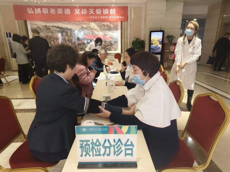 10月23日,乌鲁木齐市东门街道光华路社区新时代文明实践站联合自治区人民医院医疗保健中心门诊党支部,在自治区老干部活动中心开展“弘扬敬老美德 义诊关爱银龄”免费义诊活动。现场,多学科专家团队为老人提供健康咨询、诊断、血压测量、中医理疗等服务。
