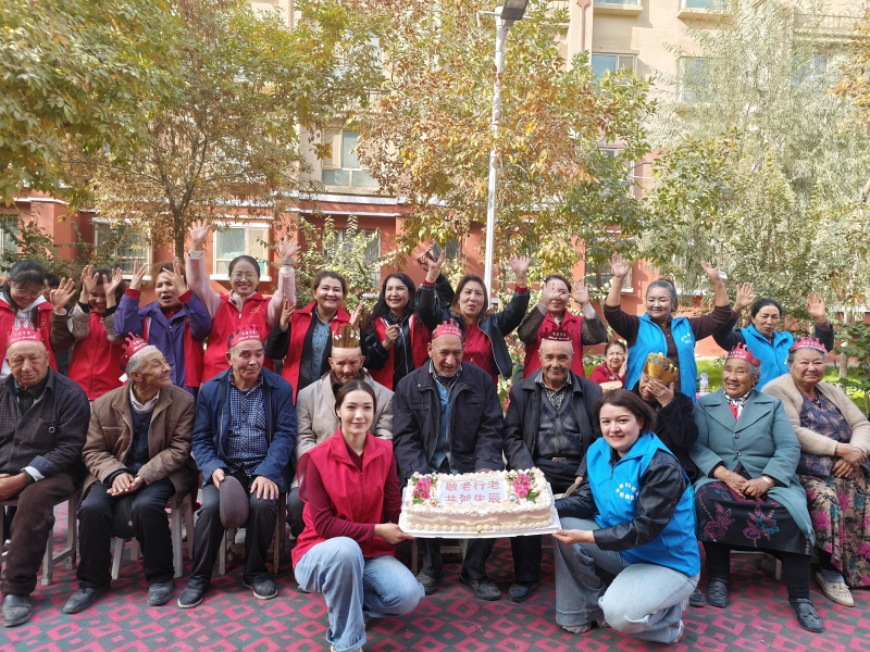 10月24日,乌鲁木齐市天山区南湾街街道中环路南社区举行“爱满重阳节 情暖老人心”活动。党员志愿者与老人一起拍照、吃长寿面和蛋糕,为老人送去关爱和祝福。