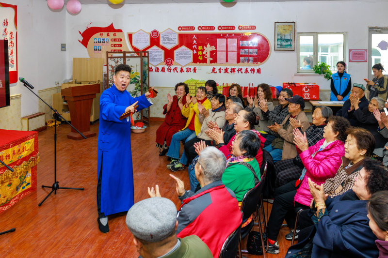 10月24日,乌鲁木齐市天山区南湾街街道夏玛勒巴克巷社区开展“欢声笑语暖夕阳  曲艺演出进社区”活动,多位相声演员通过对口、双簧等传统相声表演形式,为老年人带来欢声笑语和重阳节祝福。