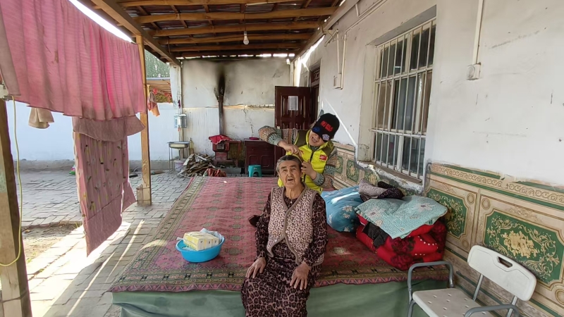 10月24日,自治区体育局驻巴楚县阿拉格尔乡依其央(17)村工作队联合村“两委”精心组织重阳节走访慰问活动,为村里老人送去节日祝福与关怀。活动当天,慰问小组带着物资走访老人,询问其身体、生活状况,帮老人整理房间、打扫卫生、量血压、推拿,陪老人聊天讲故事。