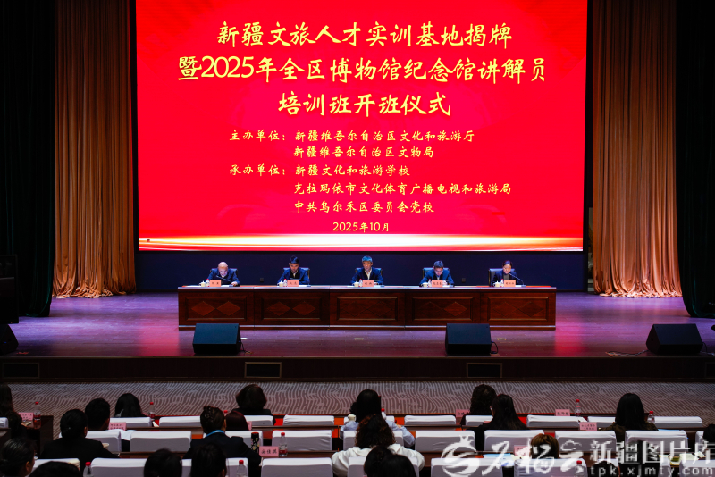 石榴云/新疆日报讯(记者 张小宓报道)10月28日,新疆文旅人才实训基地揭牌暨2025年全区博物馆纪念馆讲解员培训班开班仪式在克拉玛依市乌尔禾区举行。