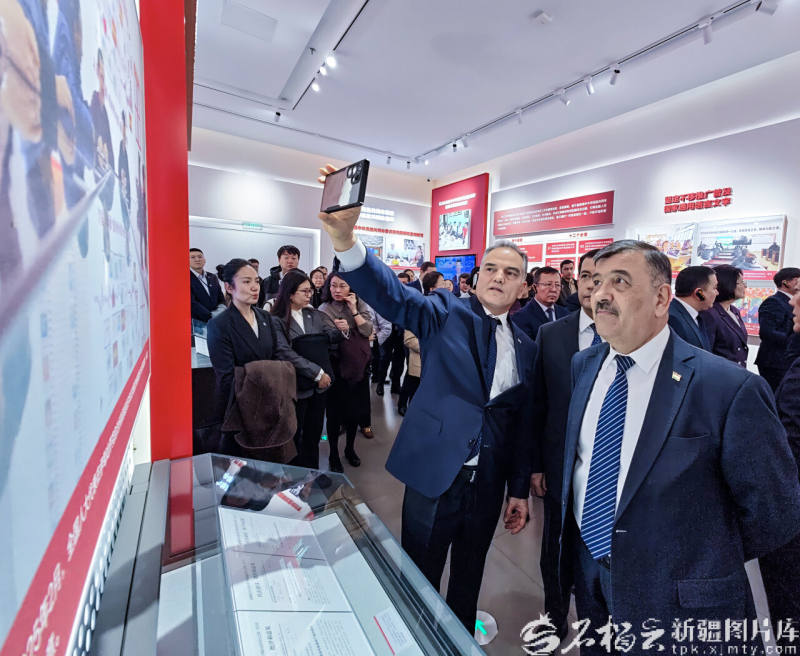 11月5日,参加第十二届中国—中亚合作论坛的多国代表团嘉宾参观新疆维吾尔自治区成立70周年主题成就展。 展厅内,一组组对比鲜明的画面直击人心:从昔日戈壁荒滩到如今绿洲新城的变迁,从手工劳作的艰辛到智能生产的高效,从贫困落后的图景到全面小康的画卷,全方位呈现了新疆在经济社会发展、民生改善、文化传承等领域的发展成果 。在科技展区,北斗导航精准农业技术、智慧水务解决方案等“中国智造”成果吸引嘉宾频频驻足。