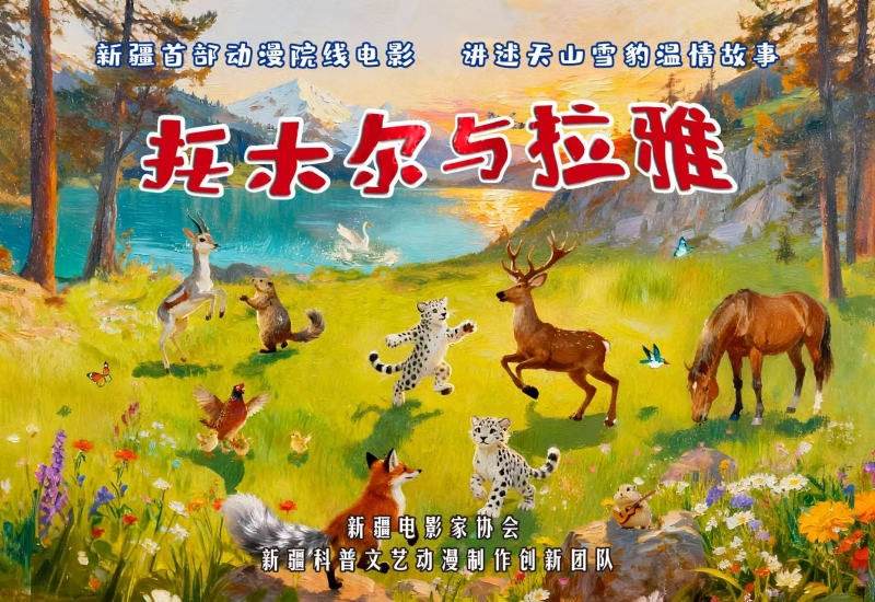动漫电影《托木尔与拉雅》气氛图。 这部时长90分钟的动漫电影,讲述了动漫小雪豹“托木尔”与“拉雅”的成长之旅:它们在自然秘境中虎口脱险,邂逅马鹿、鼠兔、沙狐、旱獭、翠鸟等众多野生动物,在尝试融入动物群落的过程中与人类产生交集。历经一系列波折后,两只小雪豹最终重返雪山。影片以科学与艺术融合的创作手法,讲述关于勇气、守护与梦想的温情故事,旨在唤起公众对生态保护的广泛关注。 “这是新疆动漫影视领域的一次创新探索,我们期望它成为传播新疆元素、普及生态理念的标杆作品。”文艺创新团队首席专家李丹莉表示,为让剧本内容更丰满、美术设计更精良,团队已多次召开研讨会,邀请专家学者共同探讨如何深挖新疆元素,打造具有高辨识度的视觉盛宴。 新疆电影家协会主席高黄刚表示,新疆电影历经40余年发展,尚无一部能代表地域特色的动画作品(含院线电影与独立短片),《托木尔与拉雅》的推出,将填补这一空白。“剧本中新疆独有的地域风貌,鲜活的动物角色,以及跌宕起伏、节奏明快的剧情,打动了众多专家,具备院线电影的潜质,能够覆盖全年龄段观众。” “以动漫为载体聚焦新疆题材,是一次极具价值的艺术尝试。”自治区文联副主席汪泽表示,影片采用年轻人喜闻乐见的艺术形式,既展现新疆的壮美风光与人文温情,又以 “托木尔”“拉雅”等角色为纽带,将团结奋进、勇敢向善的精神融入叙事,让文化力量在光影流转中自然传递。