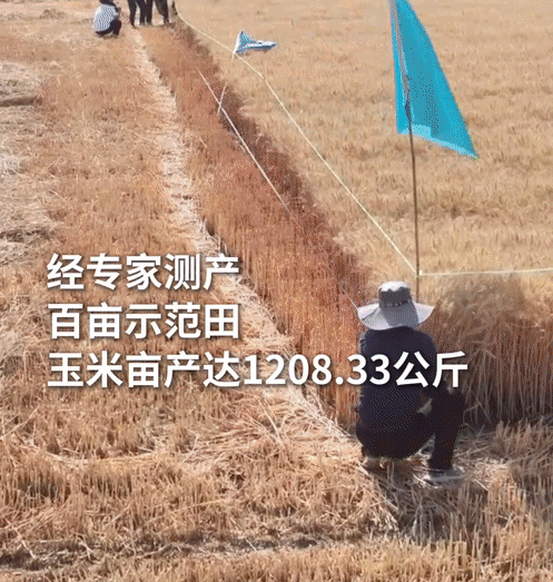 测产现场,由农业农村部玉米专家指导组、河北农业大学、河南农业大学、新疆农业科学院、塔里木大学、石河子大学等单位组成的专家组,严格按照标准流程,在示范田随机选取5个不低于0.1亩的样点,经测算,该示范田平均每亩实收果穗7075穗,果穗鲜重1623.18公斤,折合标准含水量后实收亩产1208.33公斤,最高测点亩产更是达到1280.12公斤。