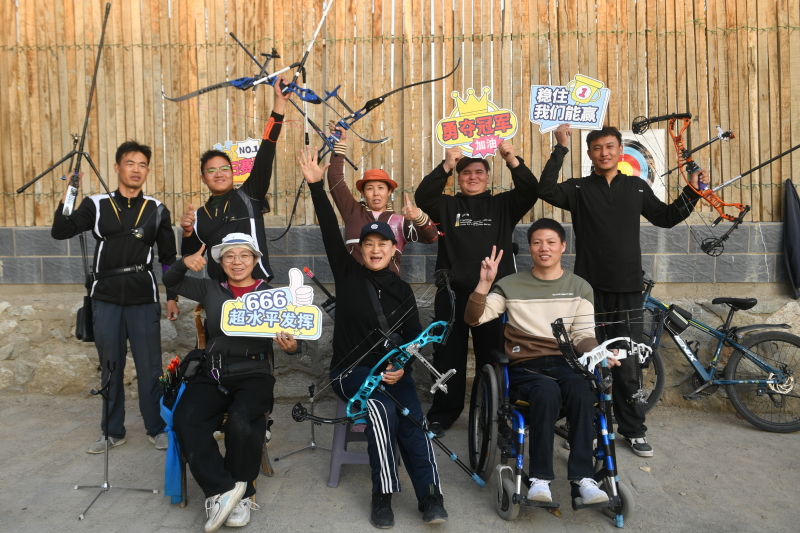 王燕红和队员们合影。王燕红提供 从乌鲁木齐、伊犁哈萨克自治州、昌吉回族自治州到巴音郭楞蒙古自治州,新疆残疾人射箭队的训练基地不断变迁,队员也在不断更替,不变的是王燕红始终如一的付出,“这项运动,帮助了很多像我一样的残疾人实现自立自强。” 这次备战全国第十二届残疾人运动会暨第九届特殊奥林匹克运动会,王燕红的射箭队里有6位弟子。这个小小的团队格外团结,遇到困难时总是互相帮助。 跟随王燕红训练已15年的弟子李传萍说:“王教练就像知心姐姐,不仅传授射箭技巧,更教会我们如何自信、自强、自立。她虽然严厉严谨,但尊重每个队员的想法。即使我们偶尔有争执,她也从不放在心上,总是像大姐一样包容我们。” “以后修箭的活就交给我了,这也是一门手艺。在训练之余,我会尽力保障师哥师姐们的训练,我们射箭队的未来也一定会越来越好。”20岁出头的叶斯哈提·努尔包拉提开心地笑着。 60后的王燕红,80后的李传萍,00后的叶斯哈提——三代人用行动完成了无声的传承,如同燕子展翅,代代不息。