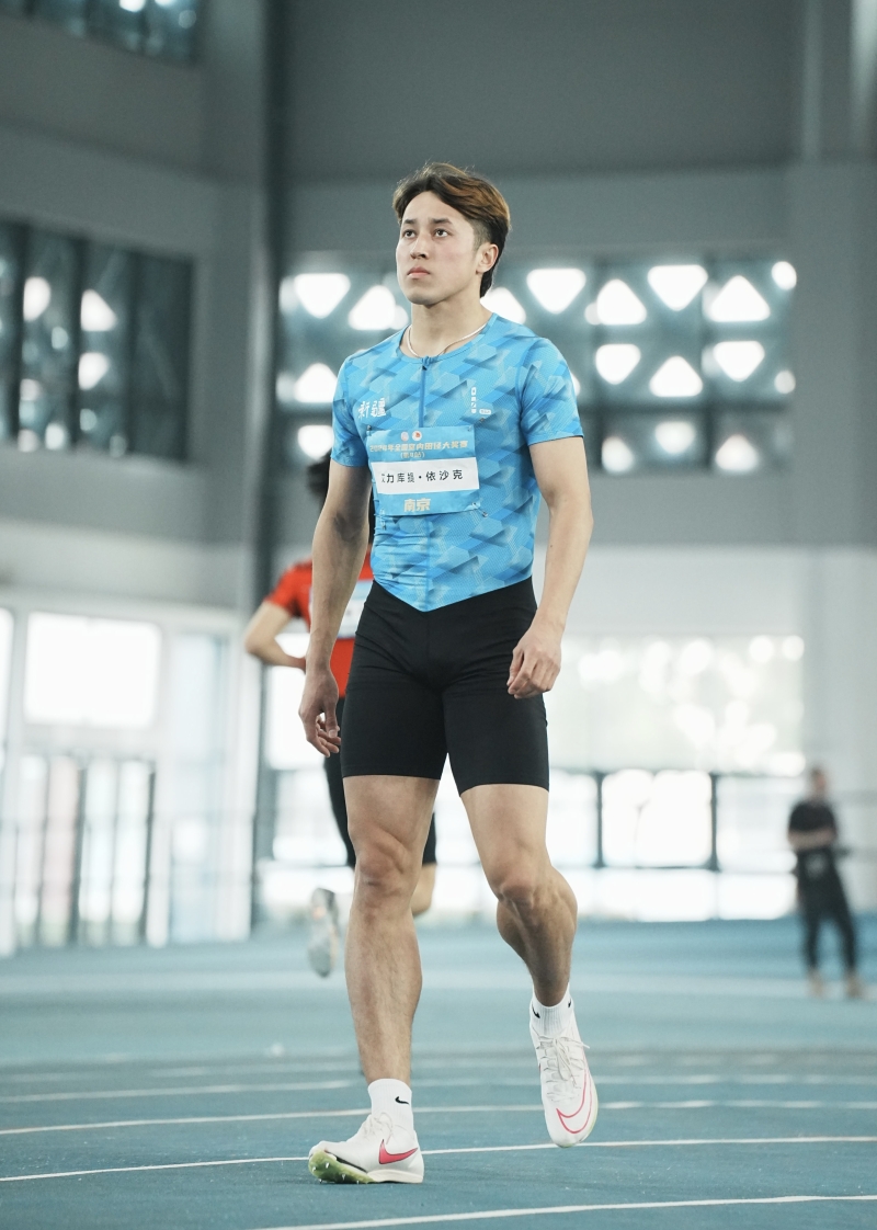新疆小将艾力库提・依沙克。 本人供图 这位来自哈密的小将与田径结缘于初中,在体育老师的启蒙下,他逐渐展现出短跑天赋。2021年,18岁的艾力库提参加全国中学生运动会,以10.44秒的成绩斩获冠军,一举达到健将级标准,那时的他还是高二学生。“从小就经常在各种校园比赛的田径赛场上拿名次,跑步让我更有自信,一比赛我就兴奋。”他说。 这一次的出色表现,成为艾力库提人生的转折点。作为一名天赋型选手,他顺利入选新疆田径队,开始了专业田径训练的道路。然而,系统训练初期的强度远超他的想象,高负荷的训练让他几乎每天都练到呕吐。起跑技术和反应能力,一度成为他最难突破的瓶颈。为了克服这些短板,他日复一日地打磨起跑动作,借助小栏架反复强化途中跑能力。训练中,他也曾感到疲惫不堪,甚至一度濒临崩溃。“每当累到不想继续的时候,我就会打开苏炳添9秒83打破亚洲纪录的视频,一遍遍地看。”他说,“是那股力量支撑着我,让我不断向前辈看齐,继续拼下去。”