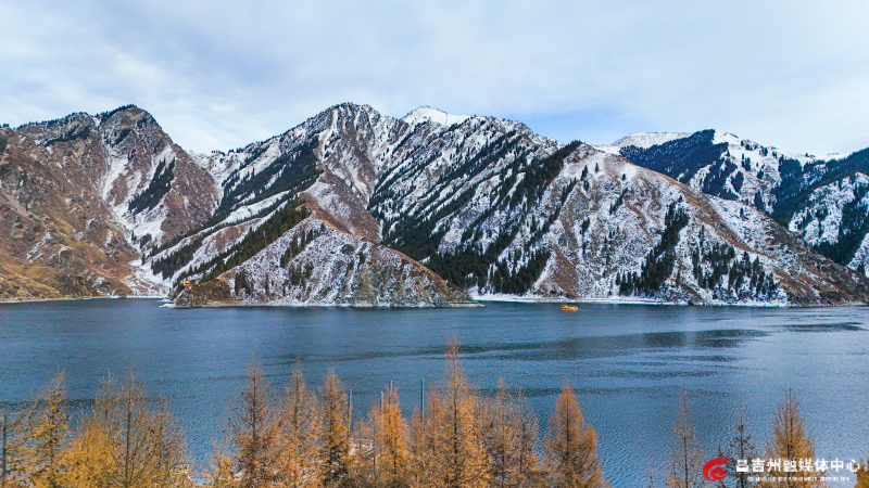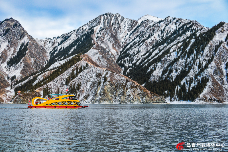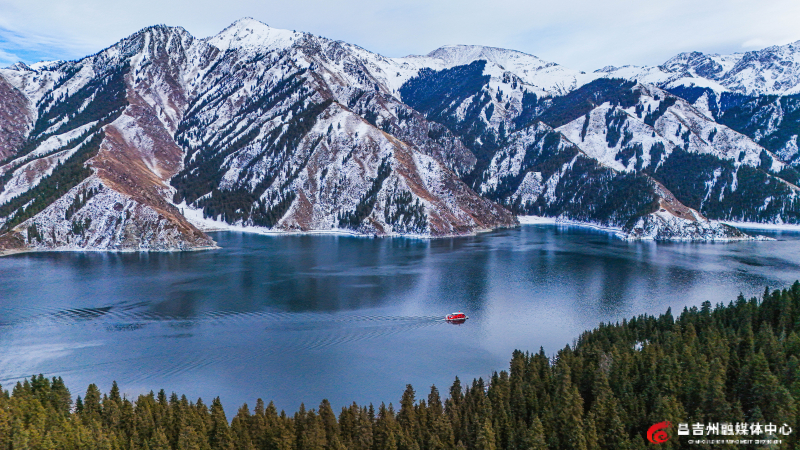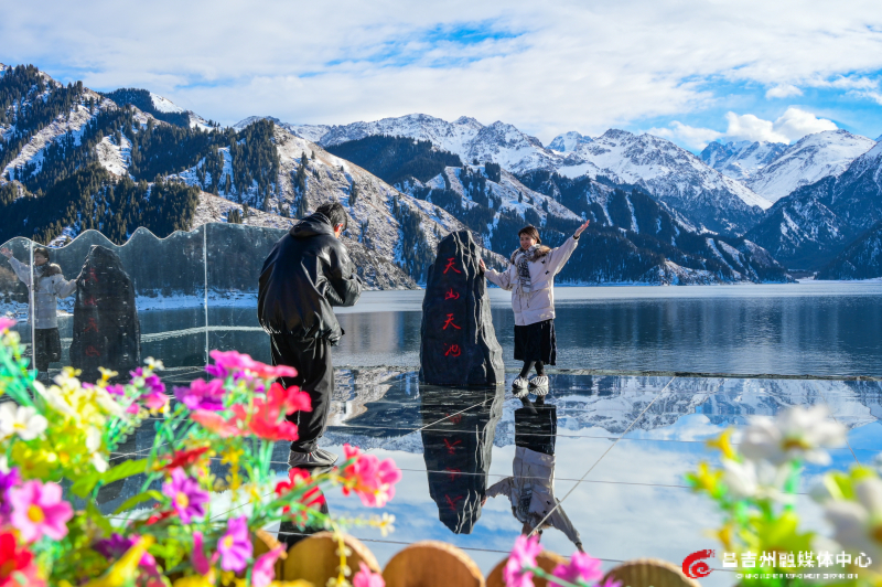 湖面倒映着山峦,美如画卷。 大雪过后,碧空如洗,阳光洒在雪地上,映射出斑斓光影。湖面倒映着山峦的轮廓,云雾缭绕的山脉如淡淡的水墨笔触,勾勒出远山的层次与韵律。清澈剔透的湖水露出婉约之美,水墨山色中透着磅礴之气。冬季的天山天池景区,山峰、池水、森林、草地均被白雪覆盖,展现出与春夏秋三季截然不同的韵味。 游客们或拍照打卡,或乘船在静谧湖面上赏雪松倒影、观远山晴空,尽享冬日诗意。