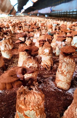 灵芝长势喜人。视频截图 洛浦县积极推进灵芝深加工,成功打造品牌,初步构建起 “种植—加工—销售”一体化产业链,生产灵芝孢子粉、灵芝酒等,小小灵芝撑起了“致富伞”。 事实上,灵芝种植在新疆多地进行了有效探索。 在喀什地区疏附县吾库萨克镇托万克吾库萨克村现代农业产业园里,现代化智能菌房内一片生机勃勃,形态饱满、色泽红褐鲜亮的灵芝被采收入筐。灵芝已成为该村破解发展难题、推动乡村振兴的重要支撑。